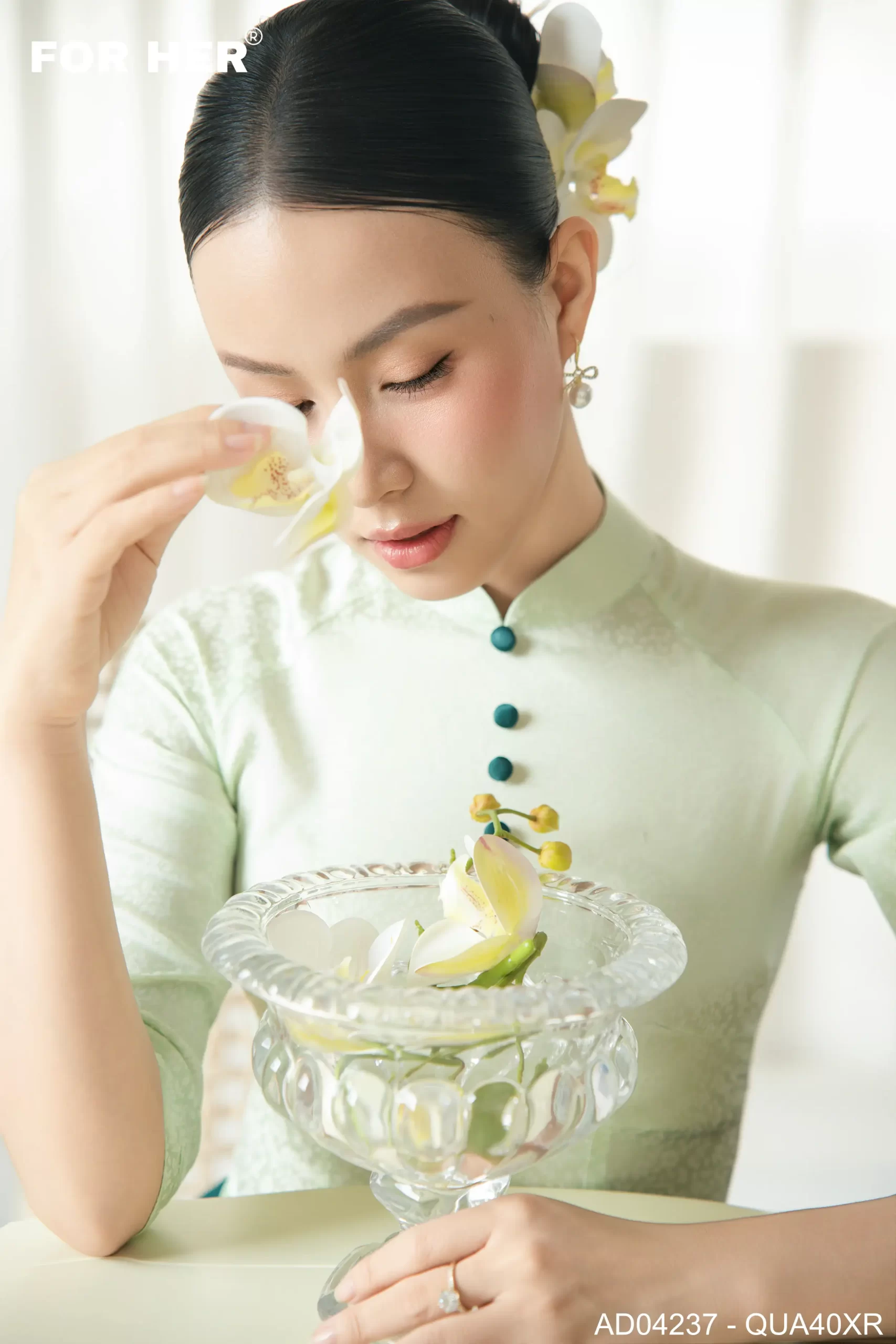 Lần đầu tiên For Her thực hiện áo dài thêu trên chất gấm, 𝐓𝐮́ 𝐍𝐠𝐮𝐲𝐞̣̂𝐭 gồm 10 màu được tuyển chọn kỹ lưỡng, mỗi màu là một họa tiết thêu khác nhau, chỉ độc quyền màu đó mới có nàng ơi. Áo dài gấm ít nhăn, cổ áo truyền thống, phù hợp xuất hiện trong nhiều dịp, sự kiện quan trọng.