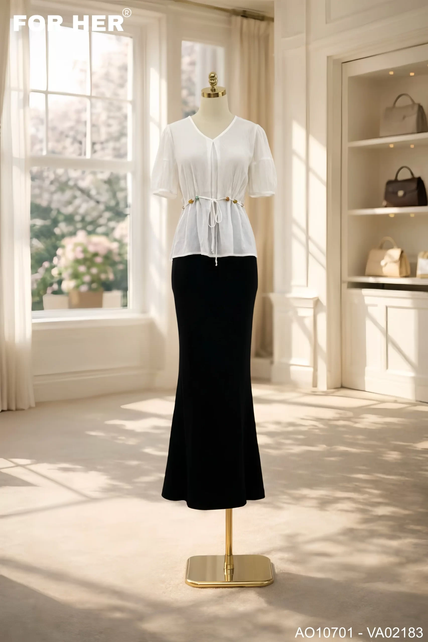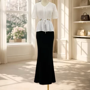Áo cổ tim dây eo AO10702
