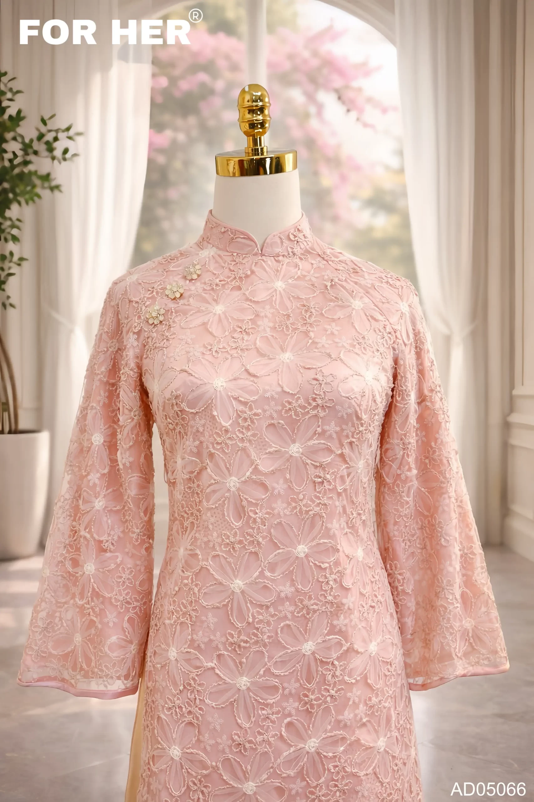 – Áo dài 4 tà Diễm Xuân ren hồng AD05066 (Chỉ bao gồm áo, không kèm quần)