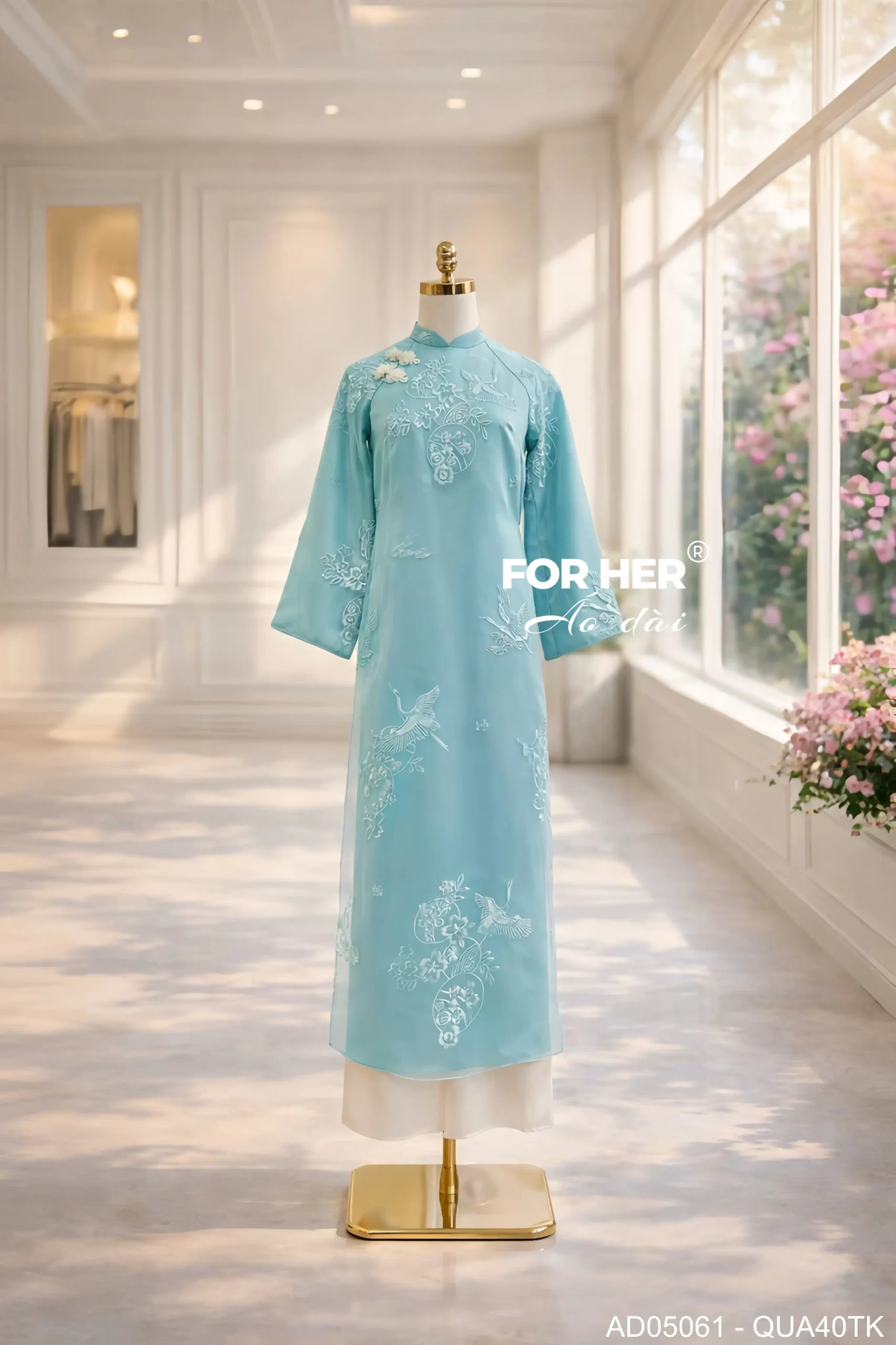 – Áo dài 4 tà Vân An thêu xanh ngọc AD05061 (Chỉ bao gồm áo, không kèm quần)