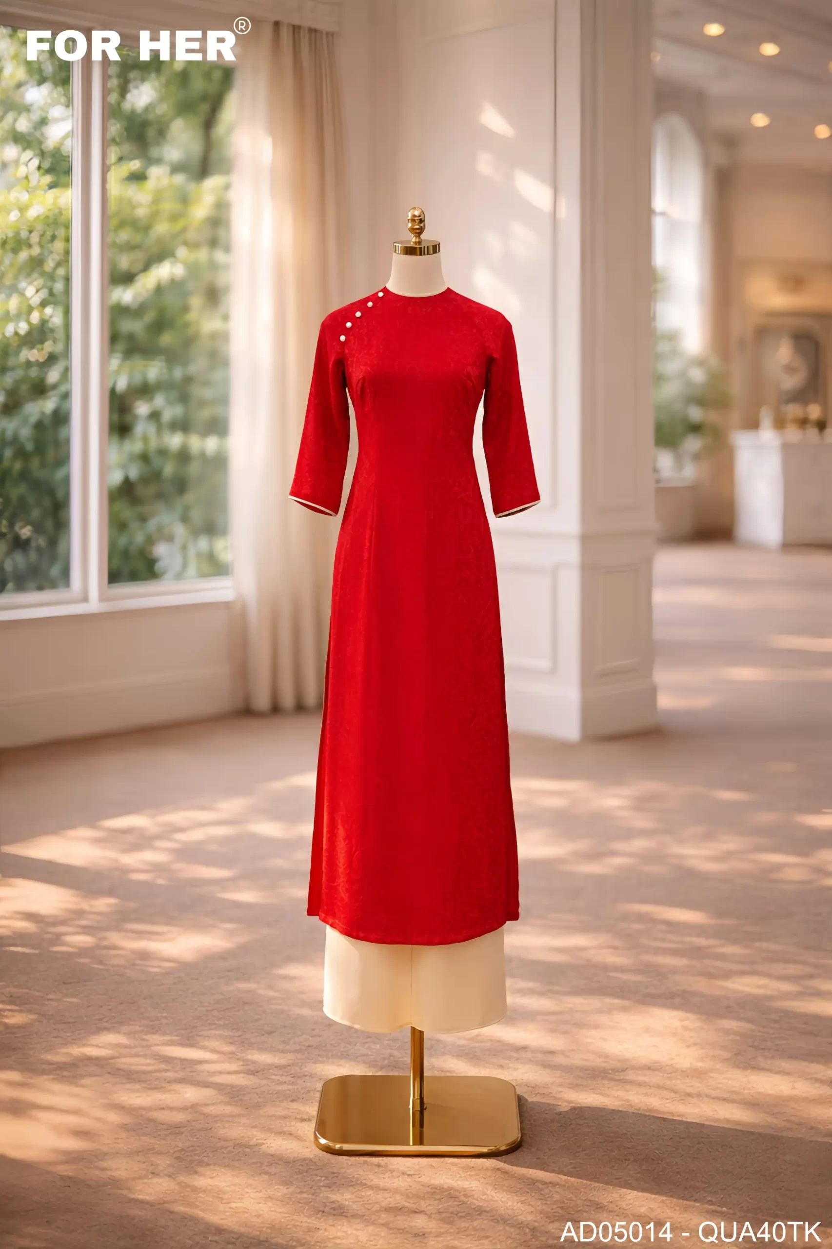 Áo dài Ánh Xuân tơ ánh đỏ AD05014