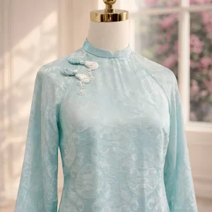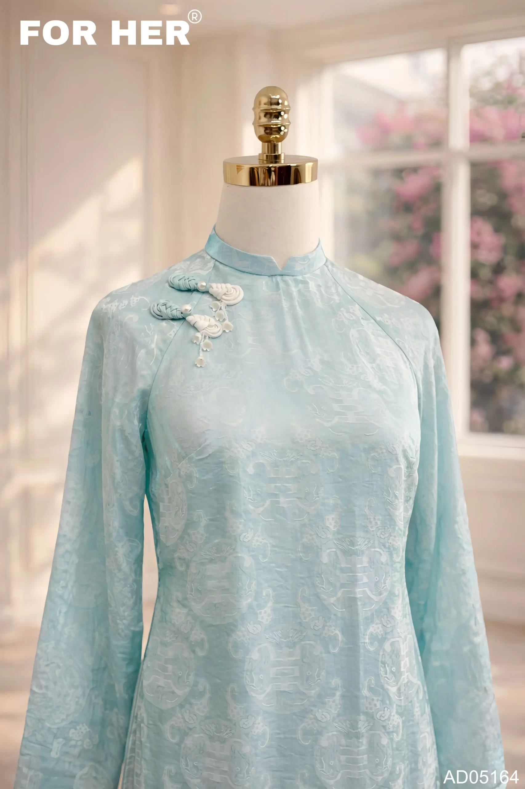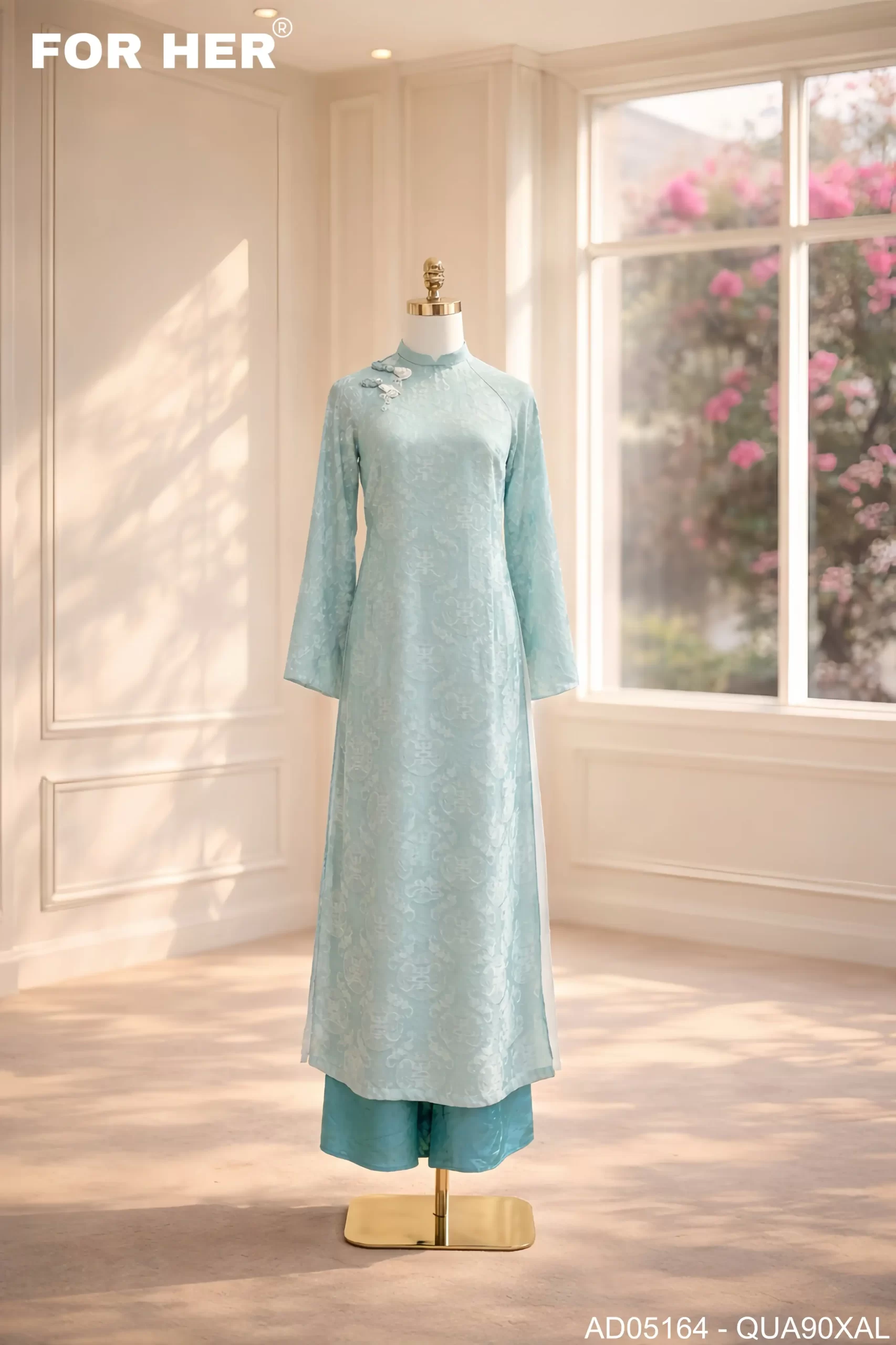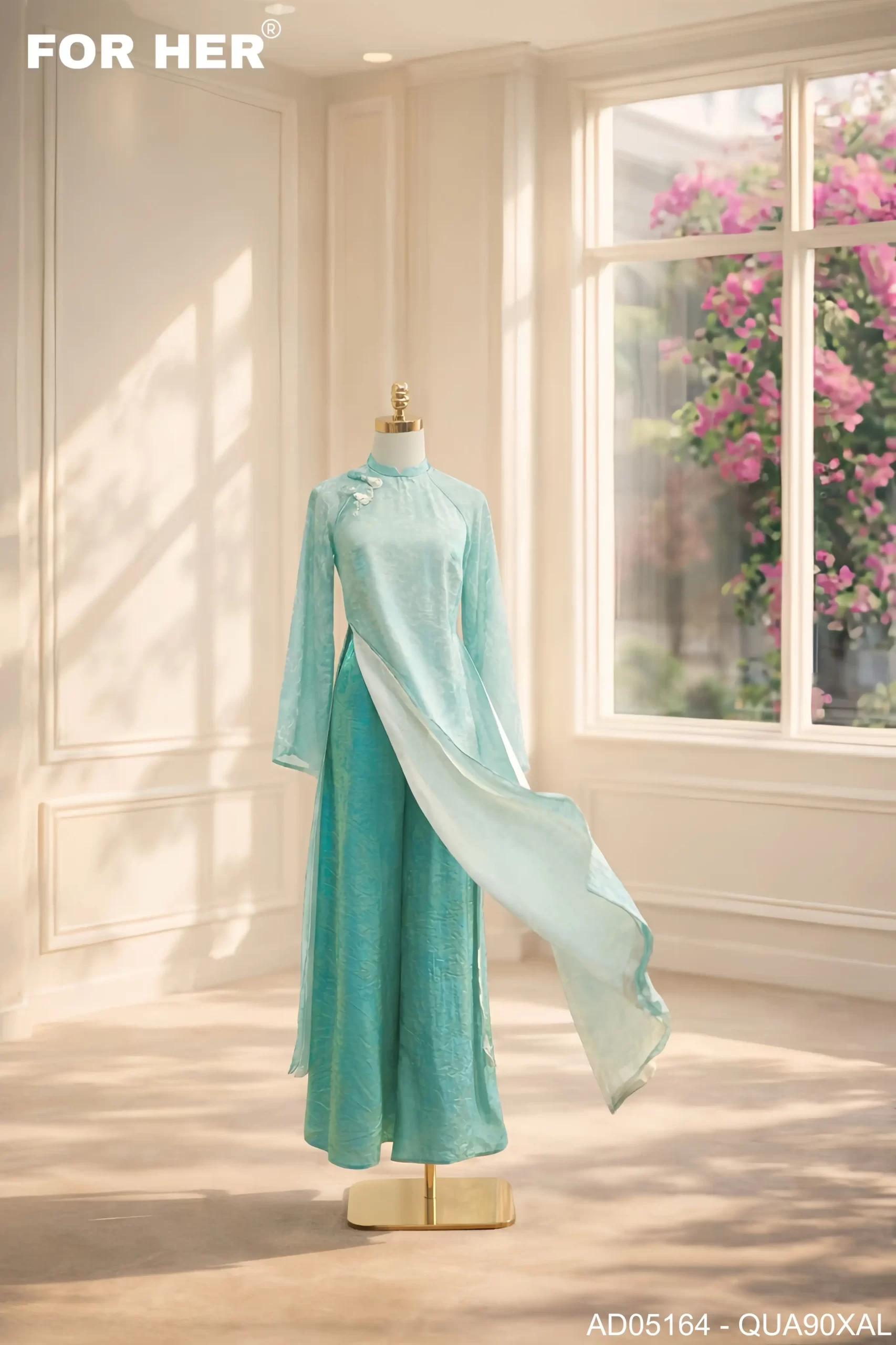 Áo dài Diễm Xuân 4 tà thọ dơi xanh AD05164