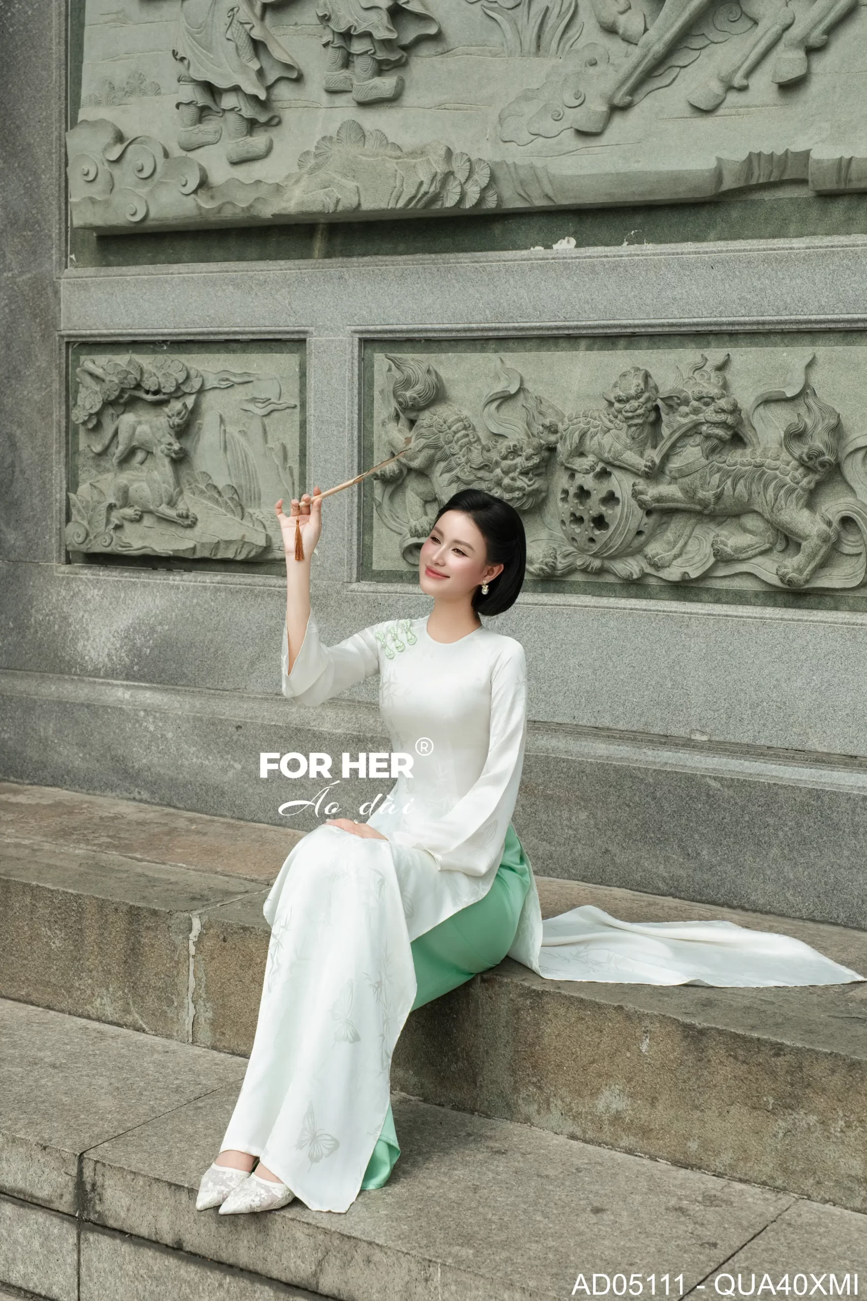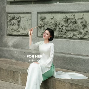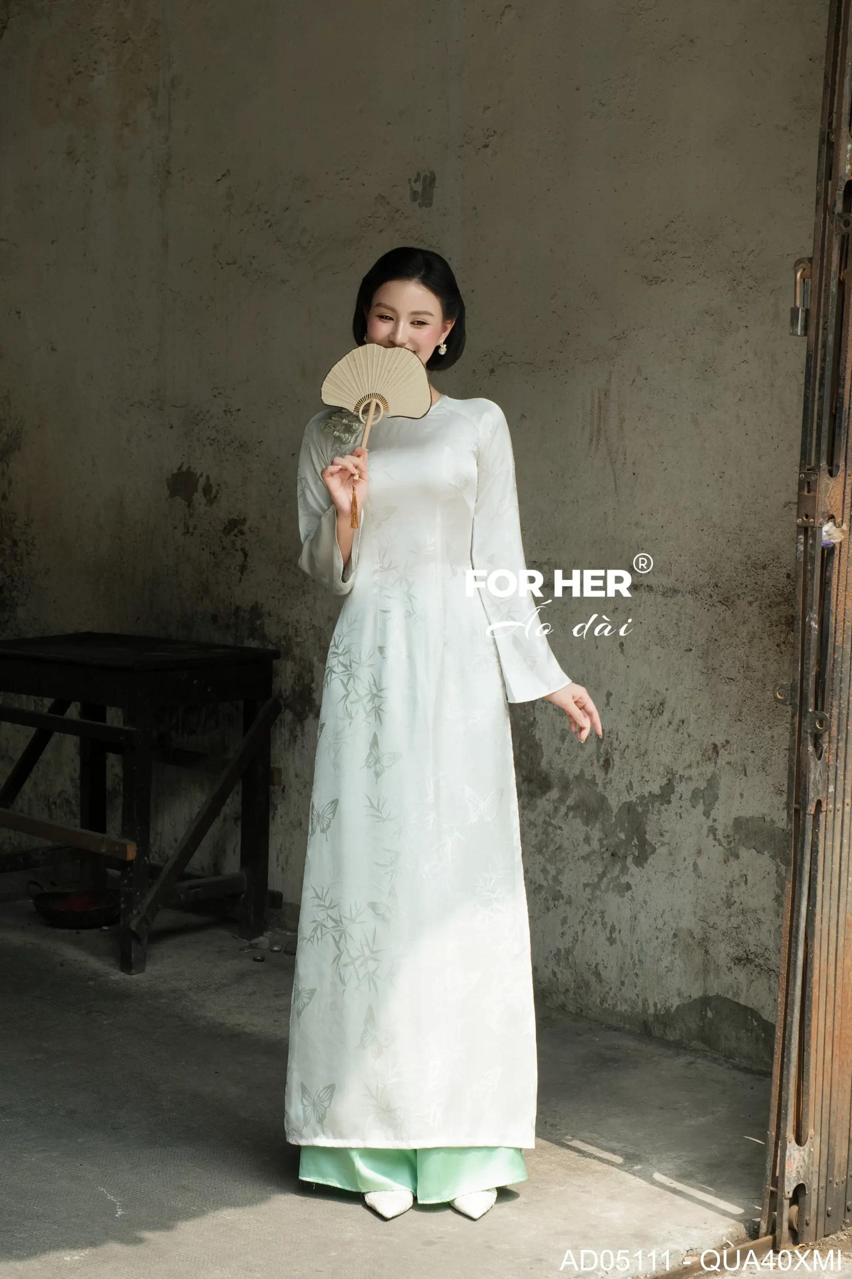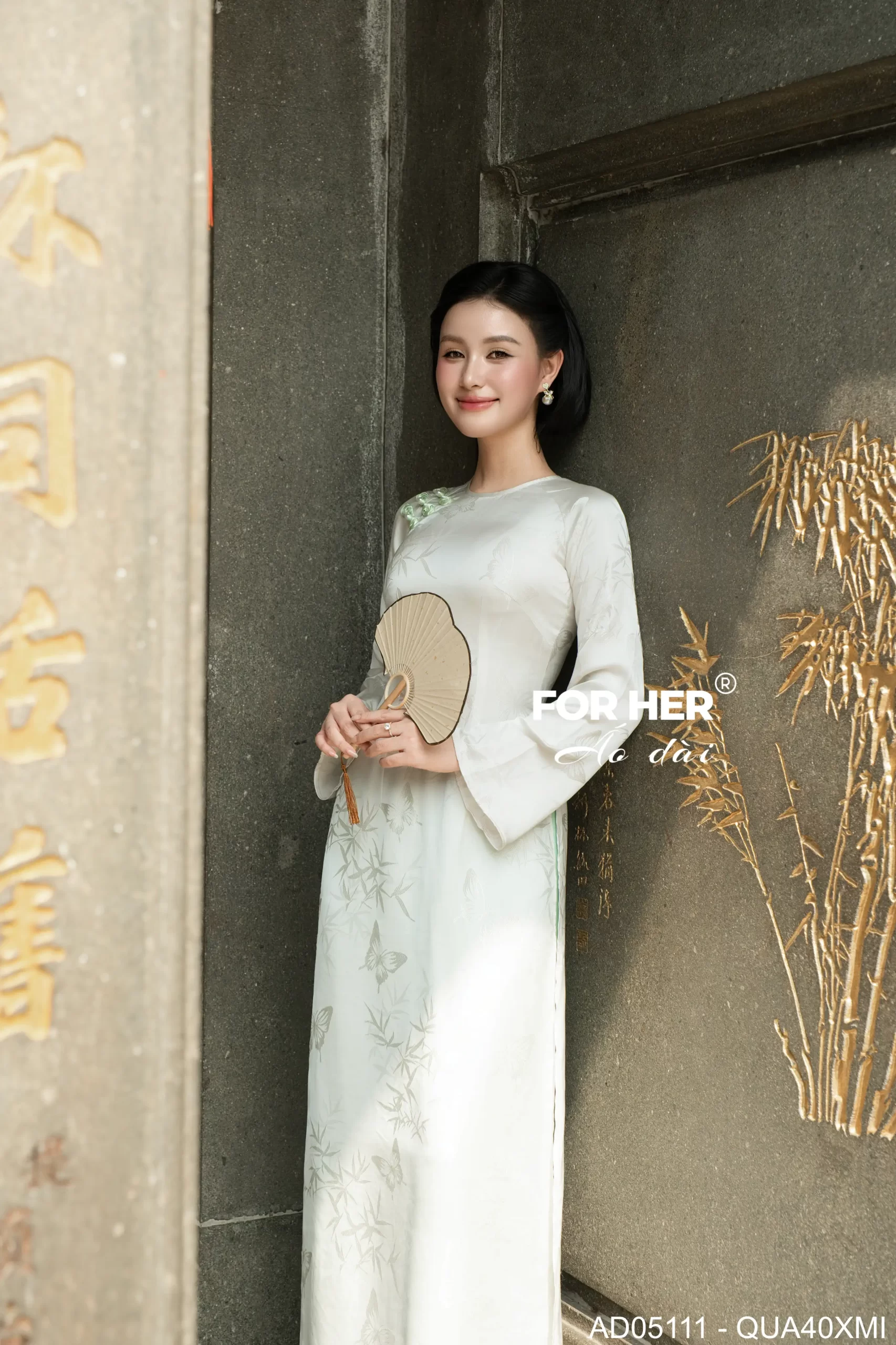 – Áo dài Diễm Xuân bướm kem AD05111 (Chỉ bao gồm áo, không kèm quần)