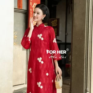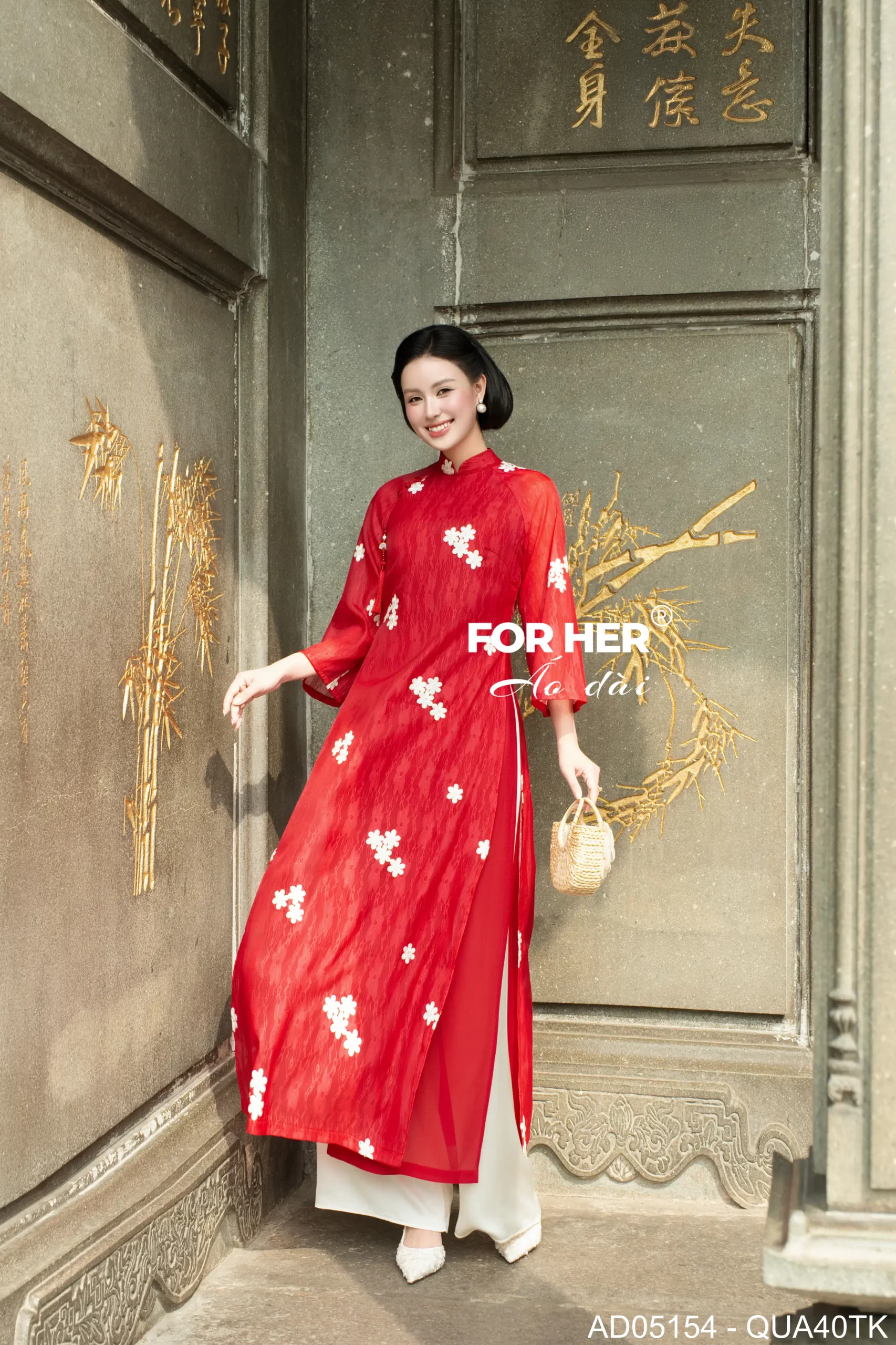 – Áo dài Diễm Xuân tua rua 4 tà đỏ AD05154 (Chỉ bao gồm áo, không kèm quần)