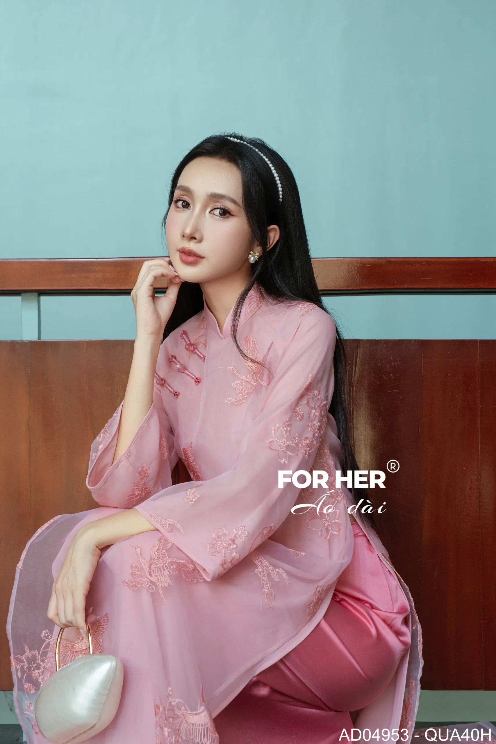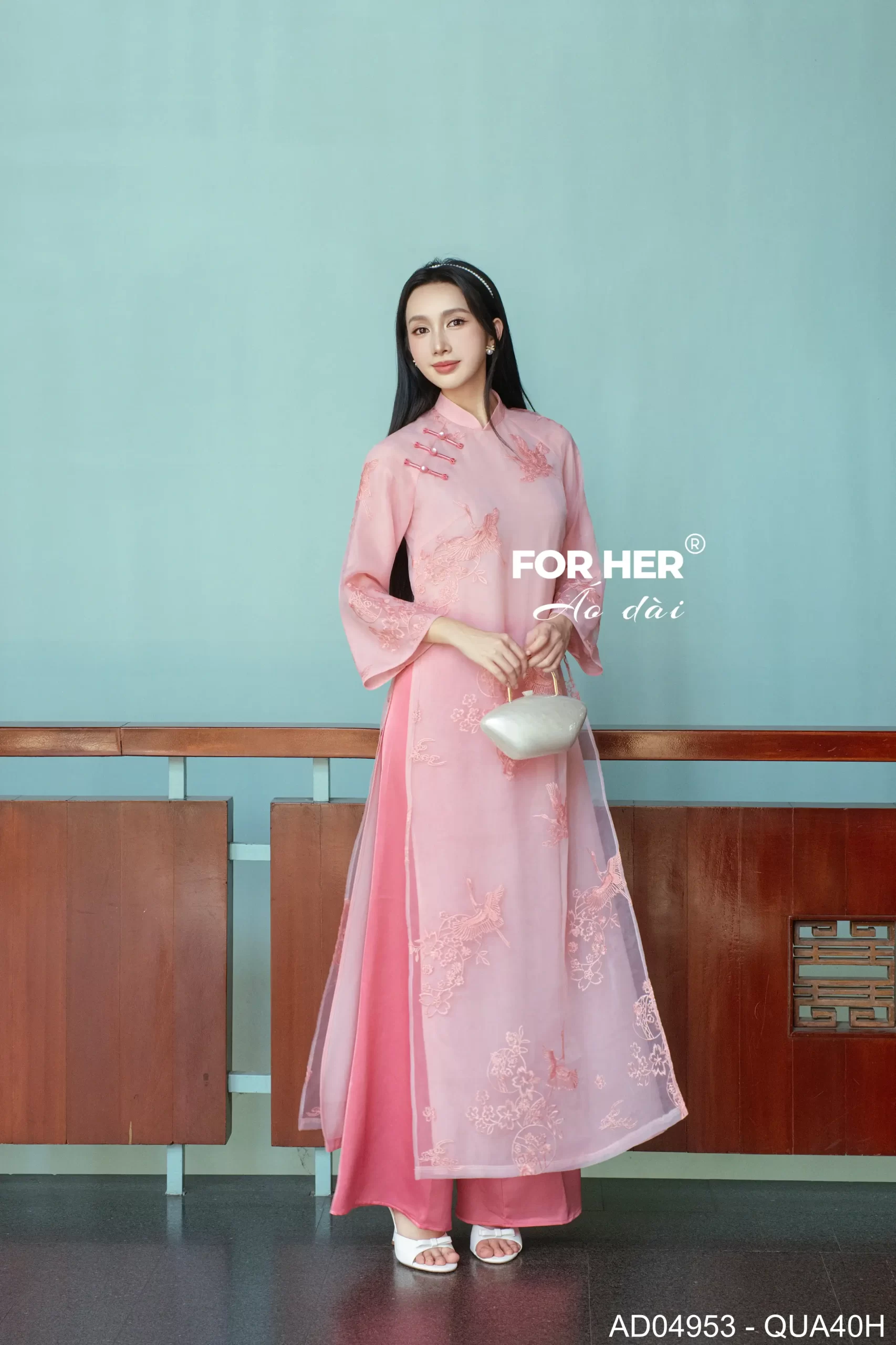 – Áo dài Mộc Tâm 4 tà hồng AD04953 (Chỉ bao gồm áo, không kèm quần)