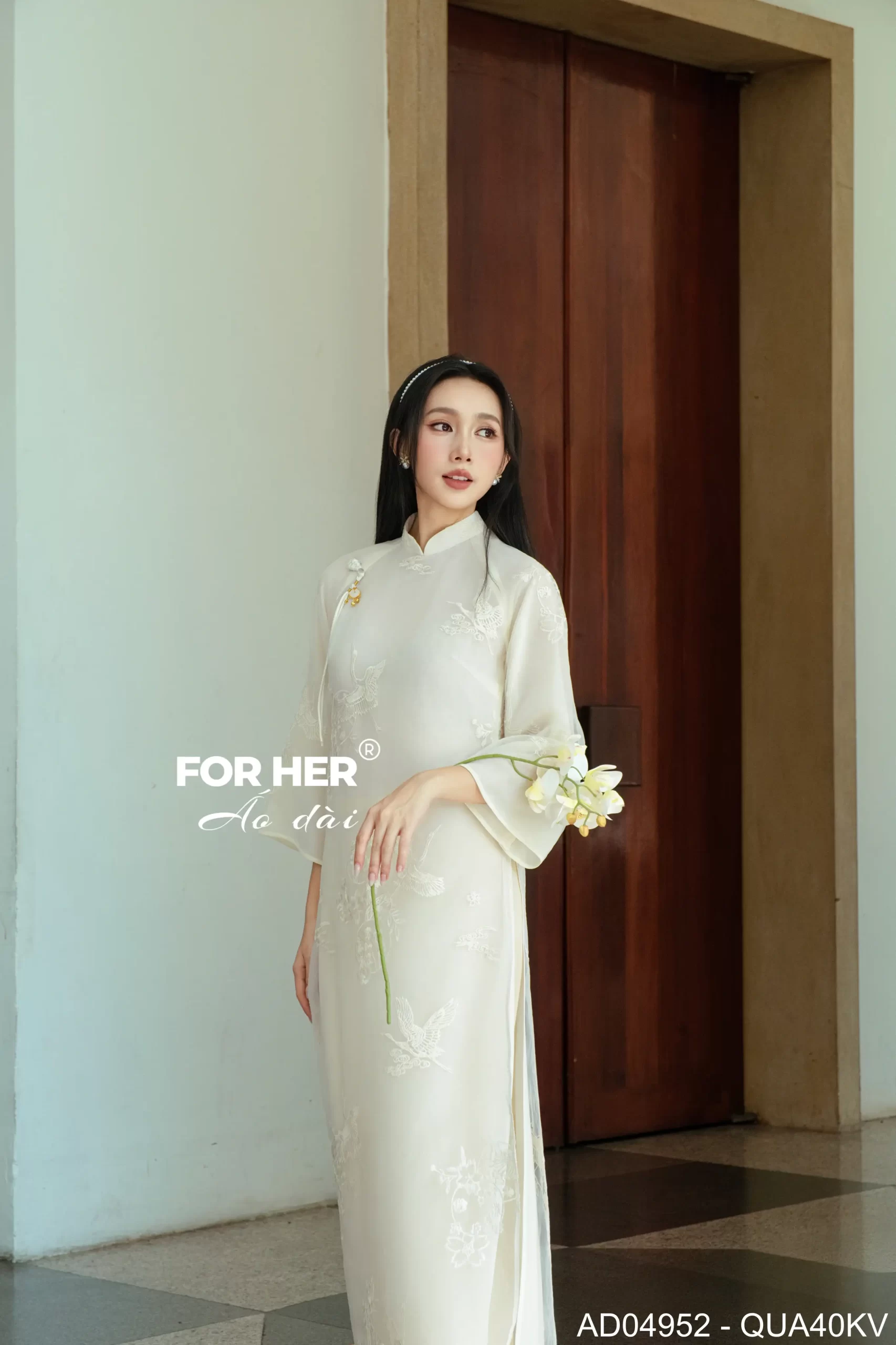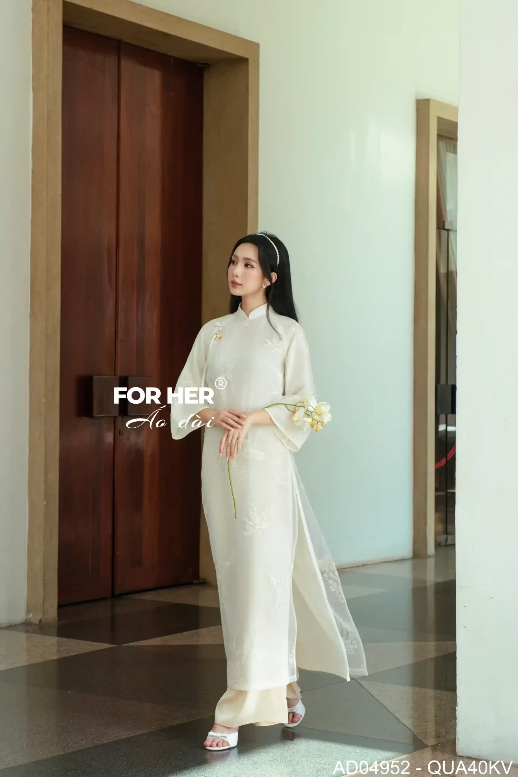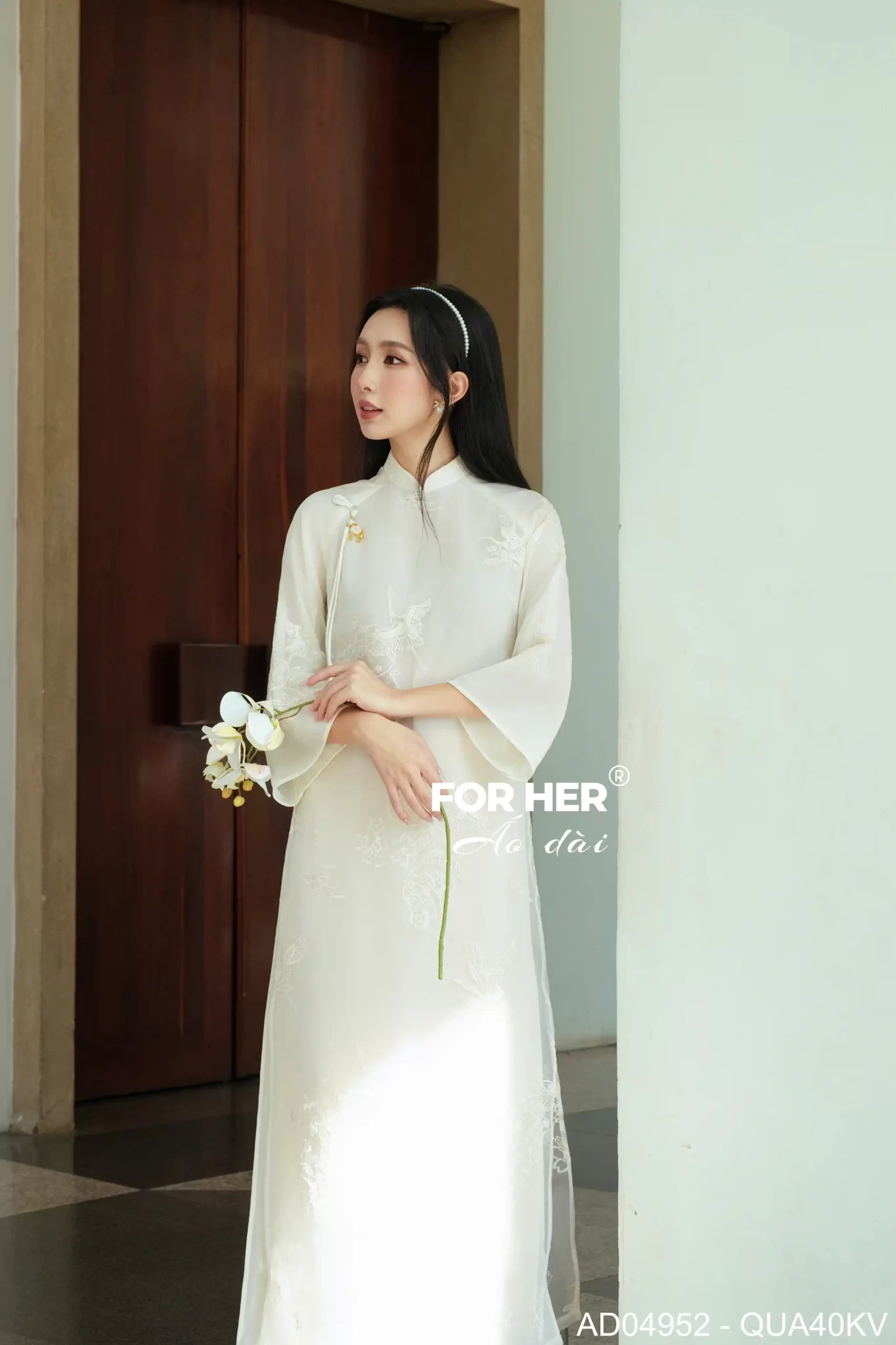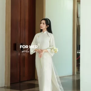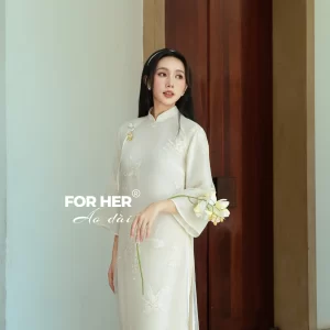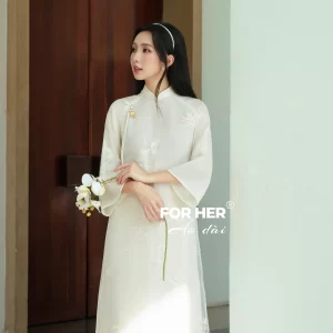 Áo dài Mộc Tâm 4 tà trắng kem AD04952