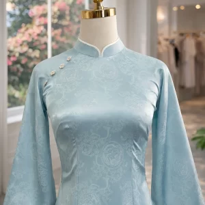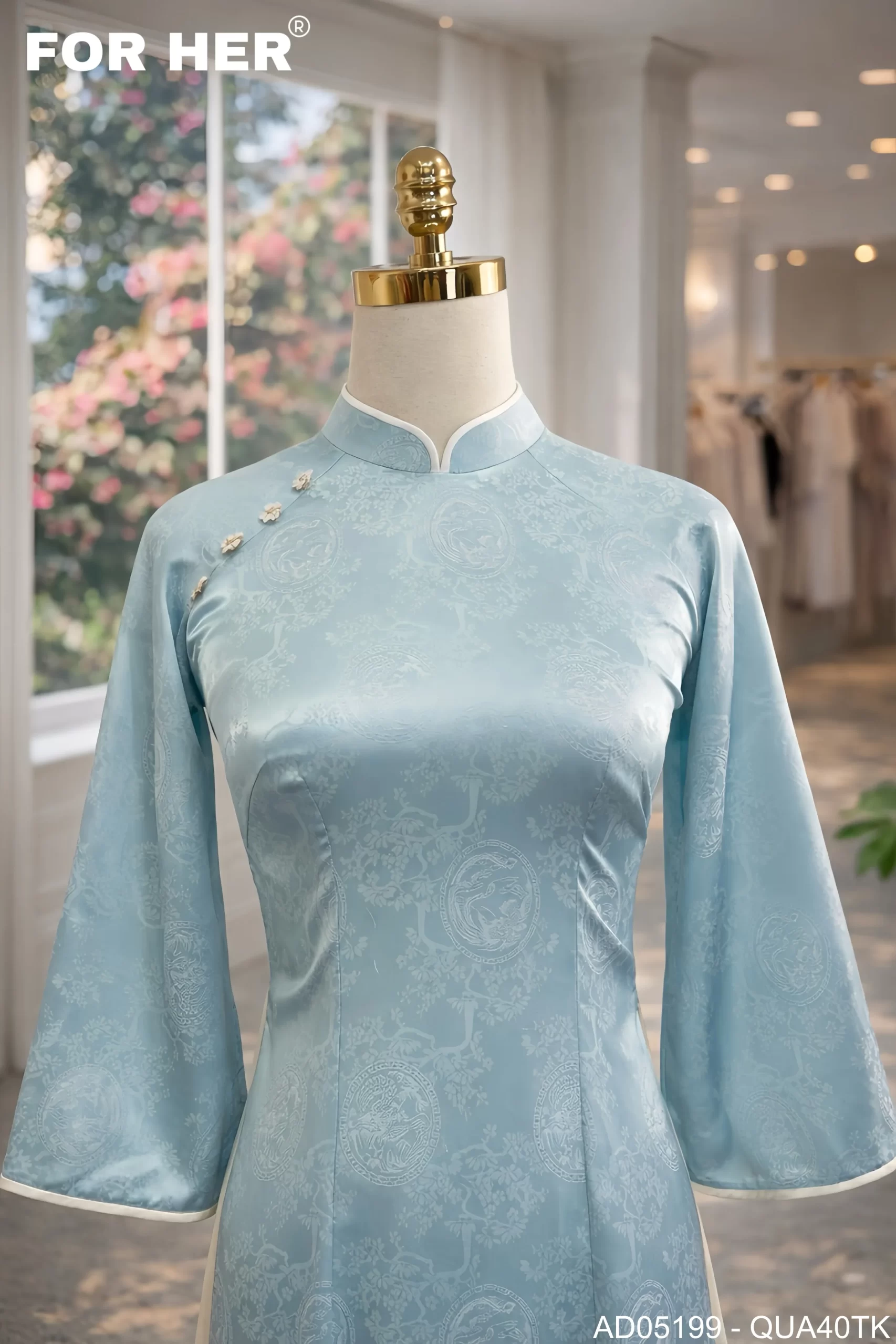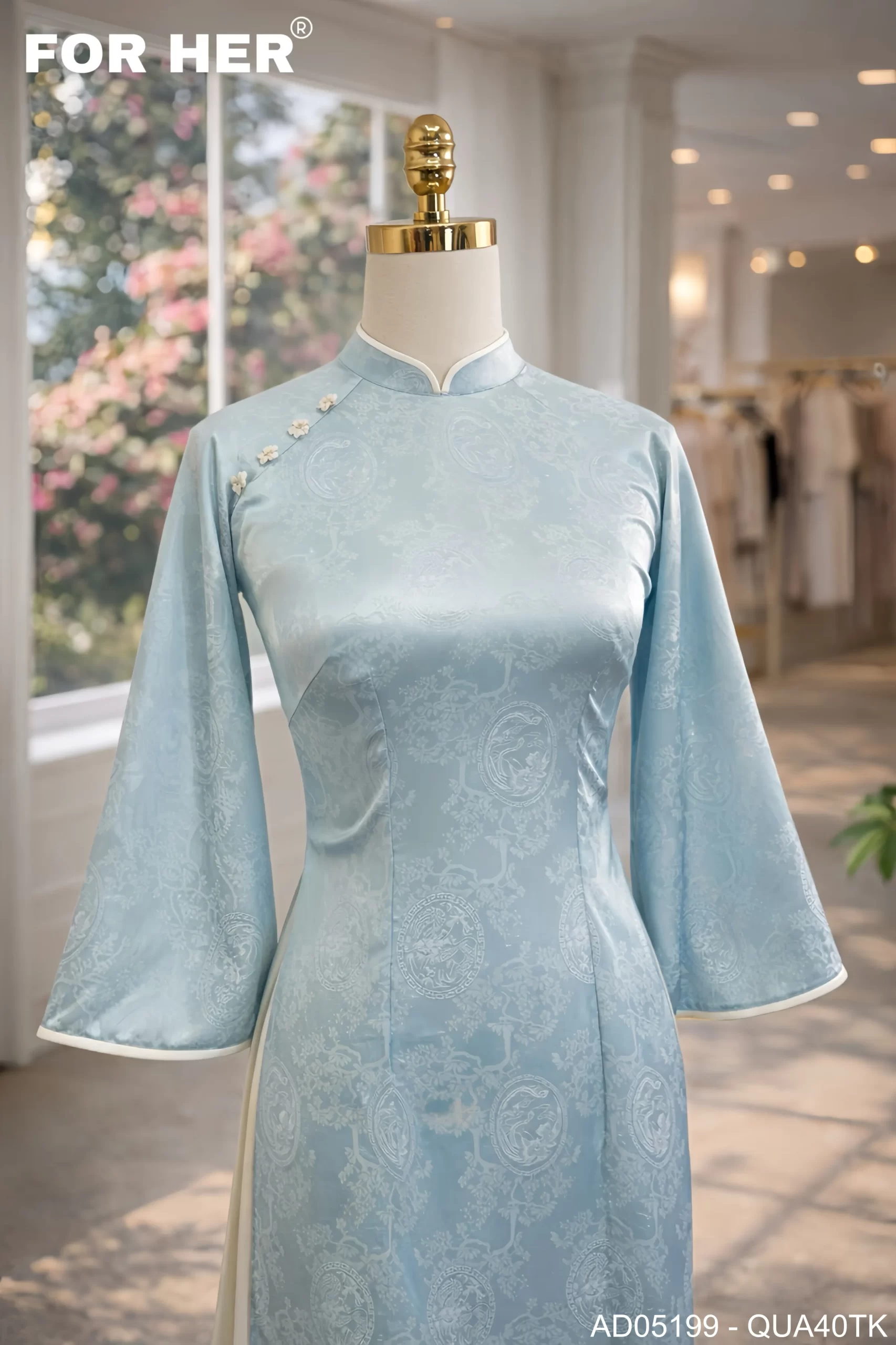 Áo dài Mộc Tâm hoa đào xanh AD05199