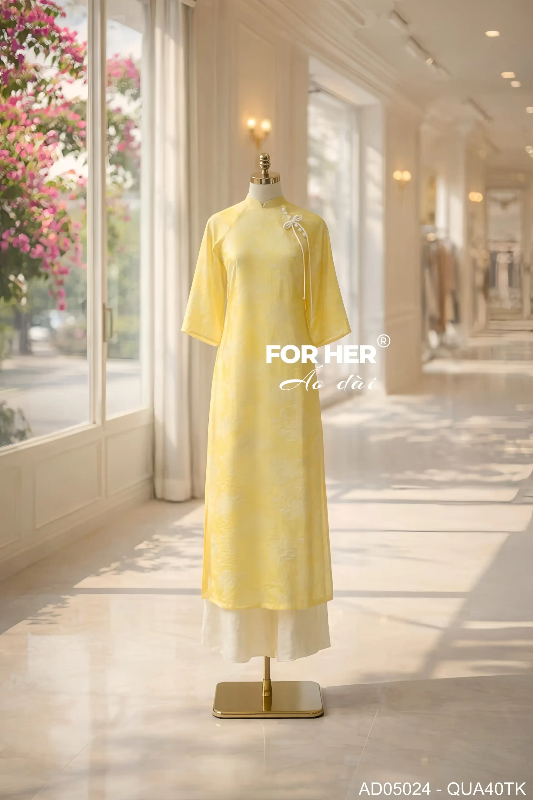 – Áo dài Mộc Tâm hoa mẫu đơn vàng AD05024 (Chỉ bao gồm áo, không kèm quần)