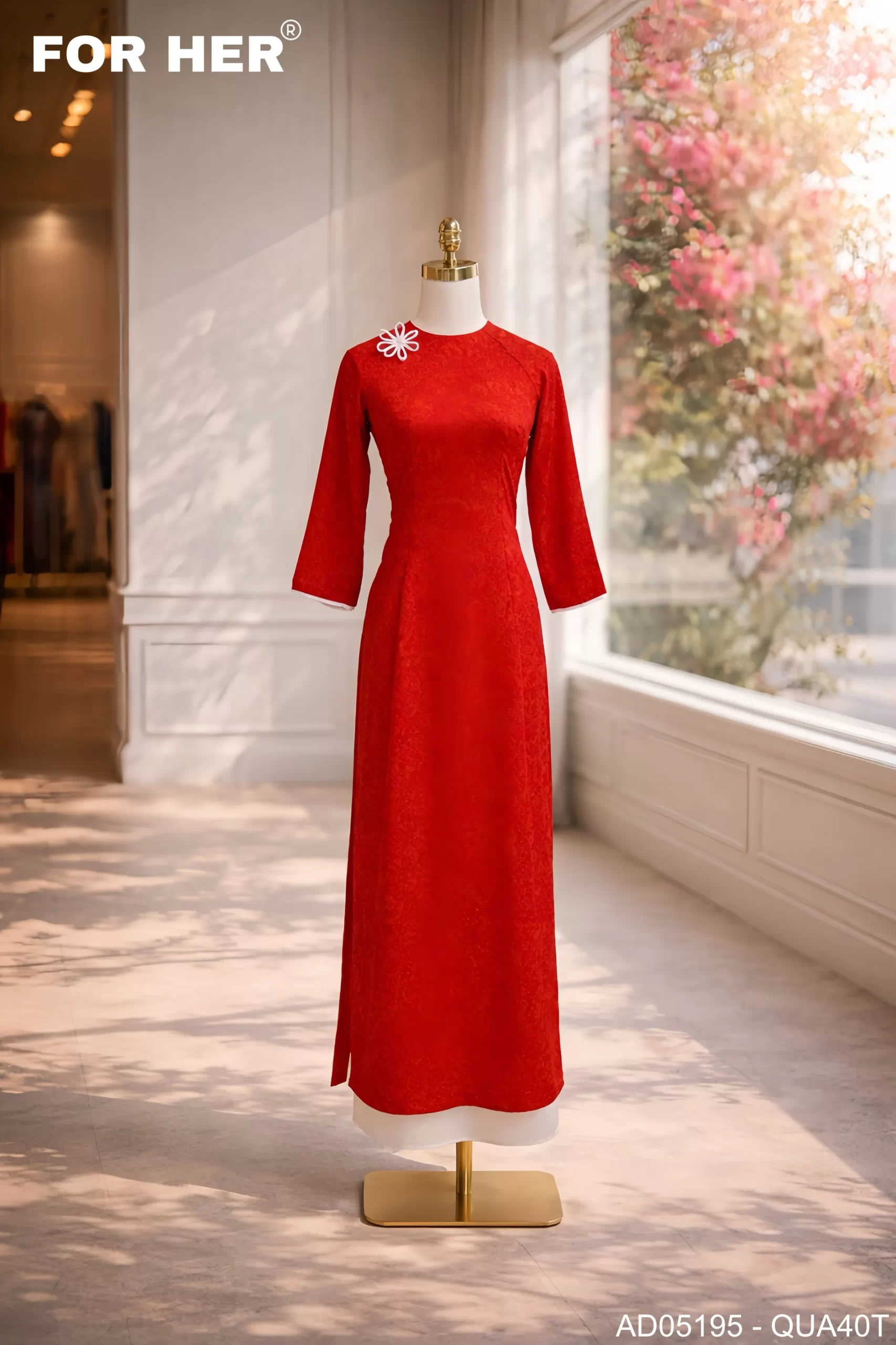 – ÁÁo dài Mộc Tâm nơ đỏ AD05195 (Chỉ bao gồm áo, không kèm quần)
