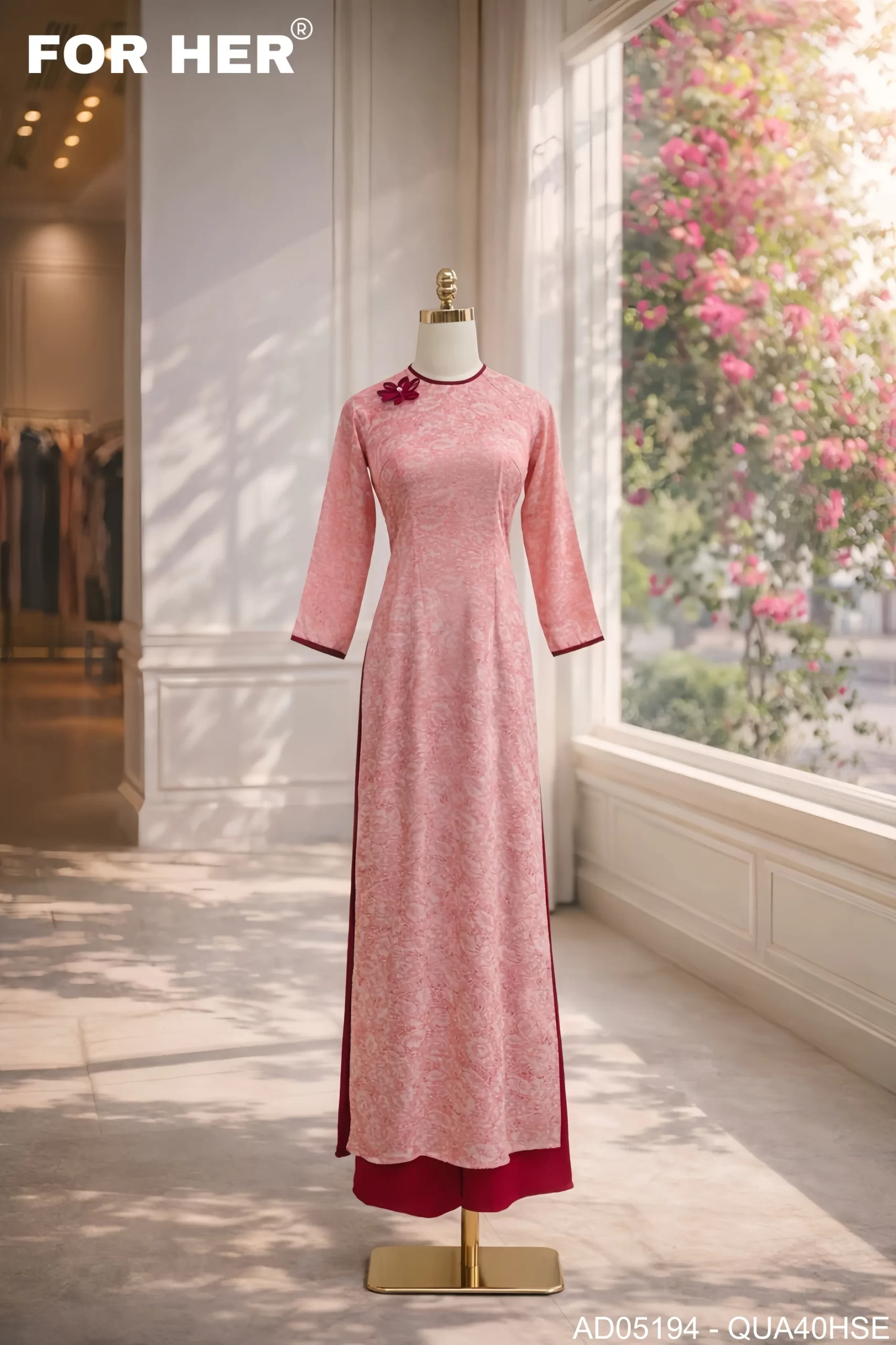 – Áo dài Mộc Tâm nơ hồng AD05194 (Chỉ bao gồm áo, không kèm quần)