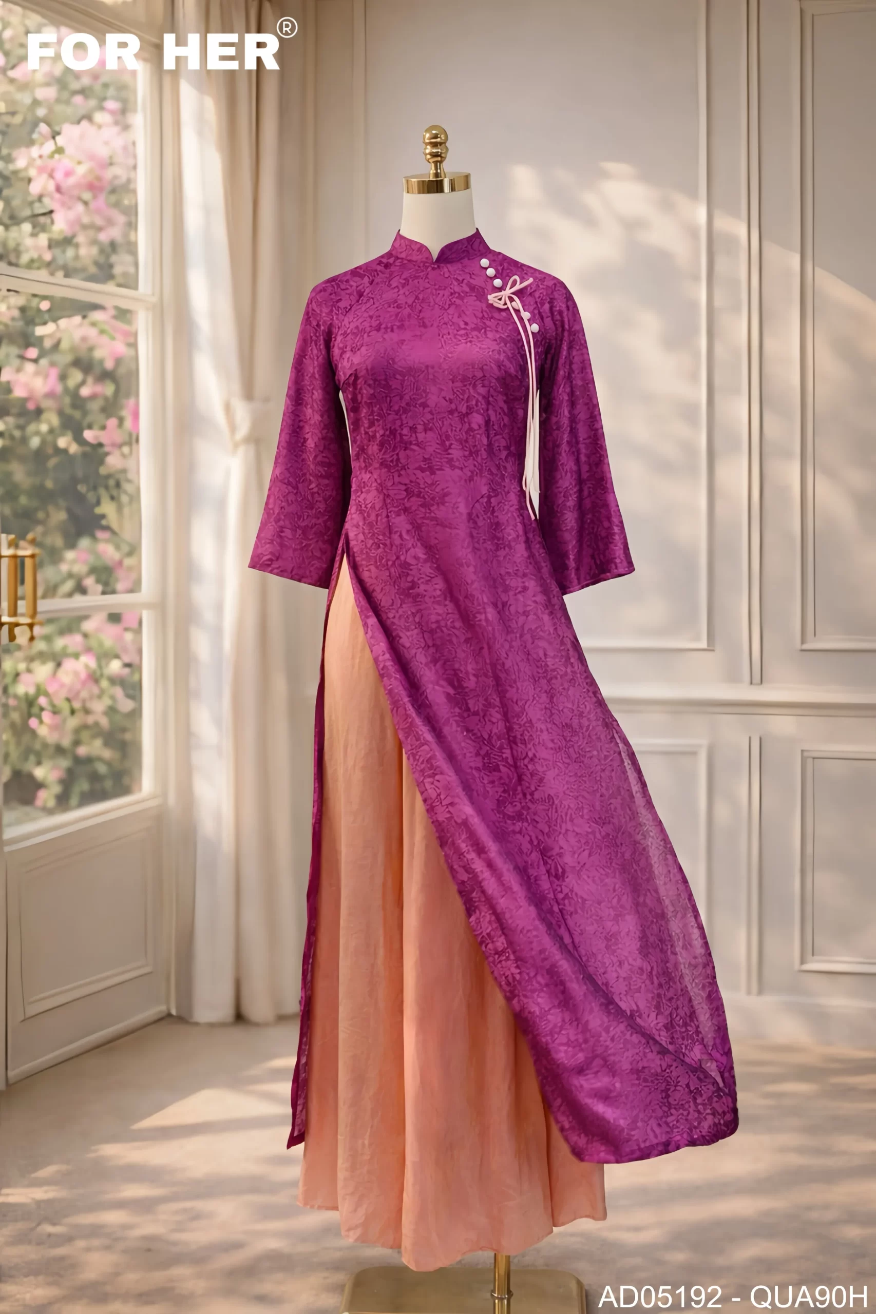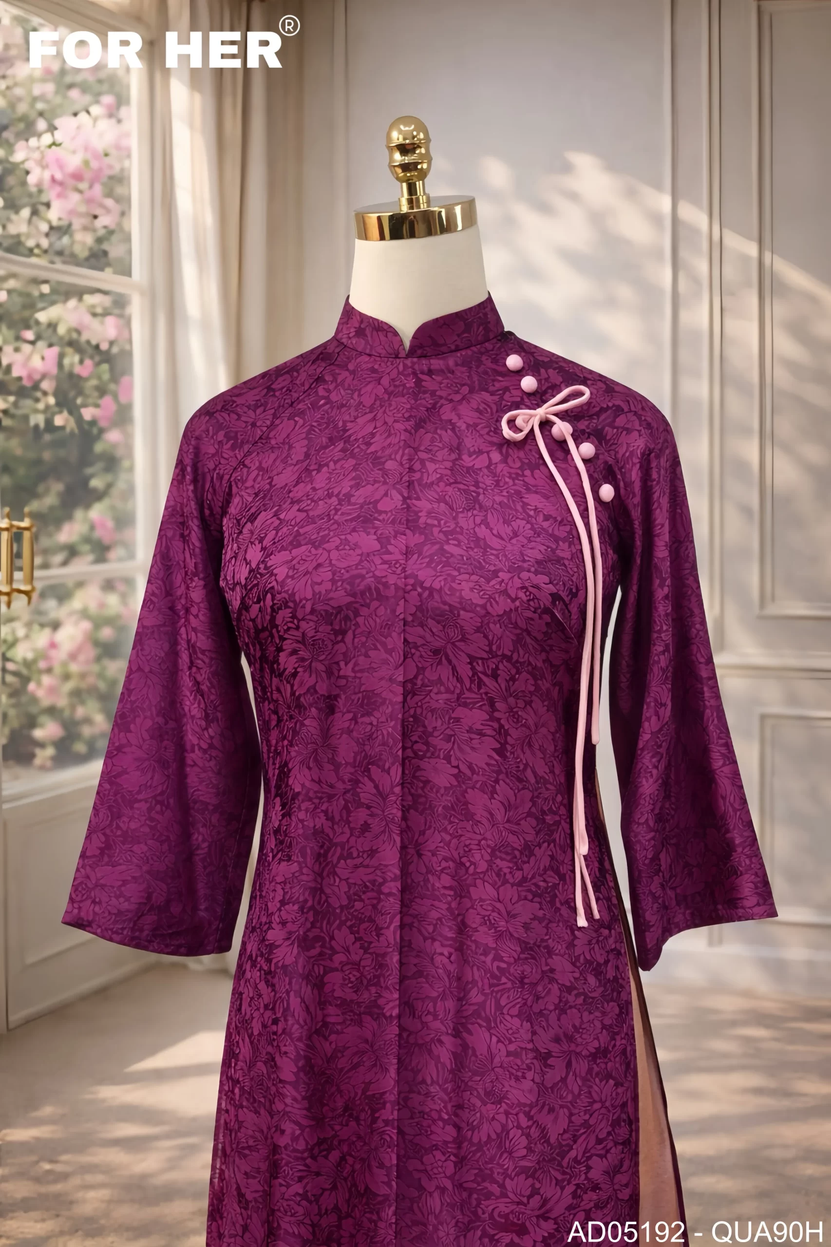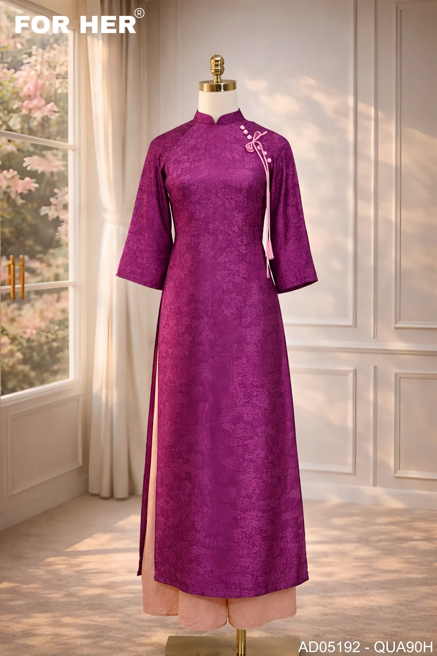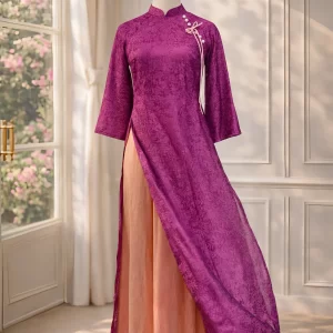 – Áo dài Mộc Tâm tím nơ hồng AD05192 (Chỉ bao gồm áo, không kèm quần)