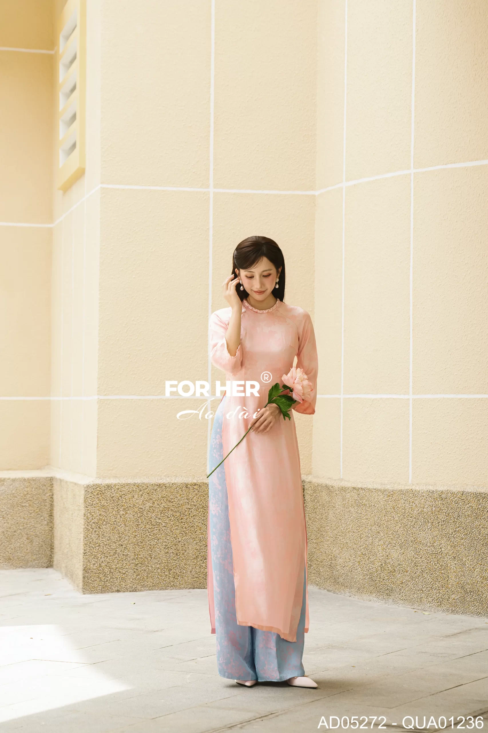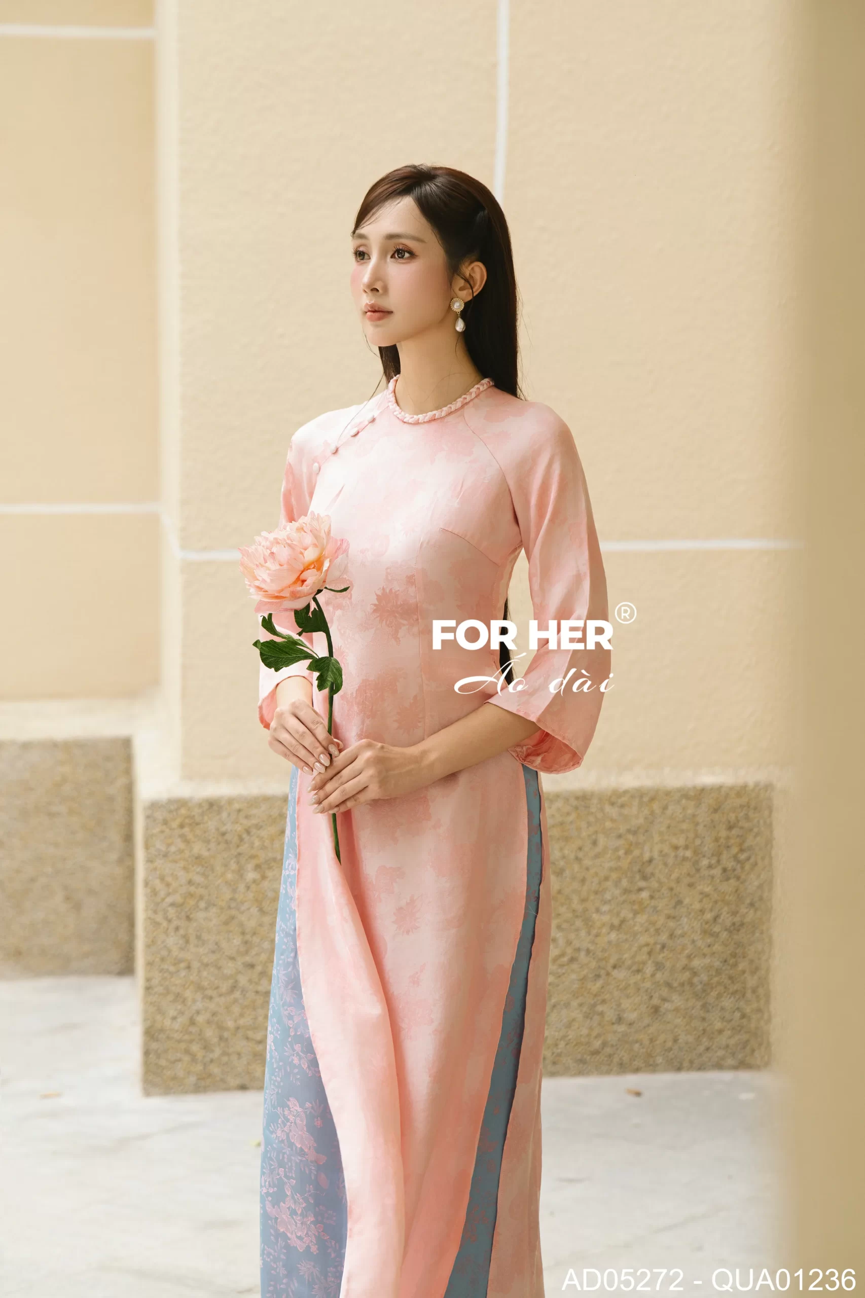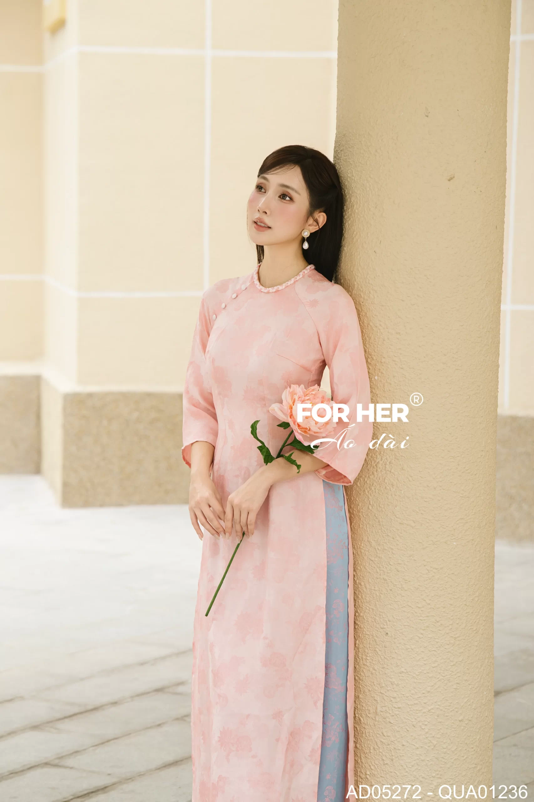 – Áo dài Nàng Thơ cổ bính hồng AD05272 (Chỉ bao gồm áo, không kèm quần)