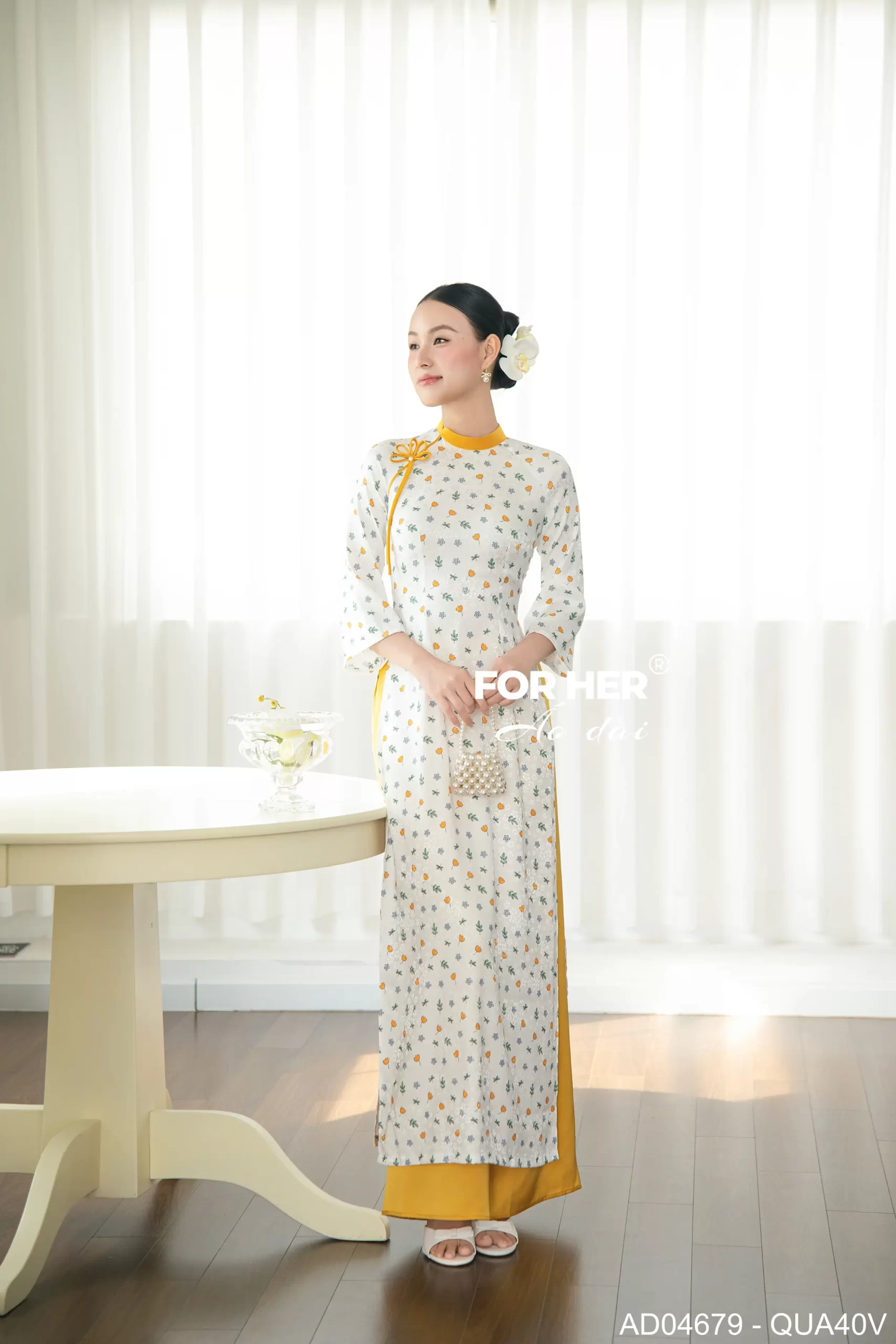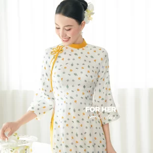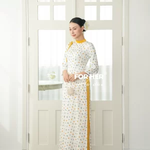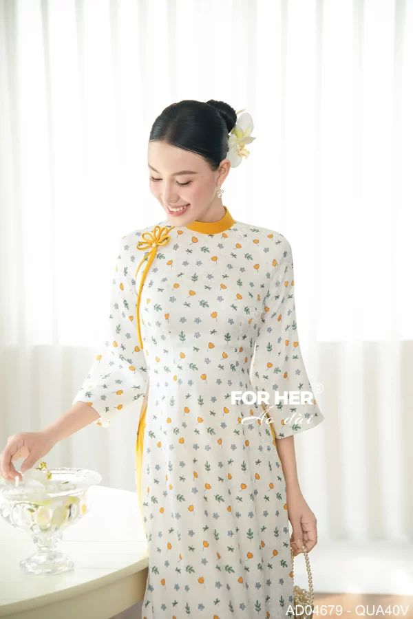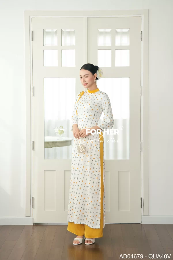 – Áo dài Sương Mai gấm nhí vàng AD04679 (Chỉ bao gồm áo, không kèm quần)
