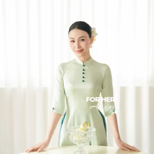 –Áo dài Sương Mai gấm nhí xanh AD04237 (Chỉ bao gồm áo, không kèm quần)