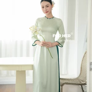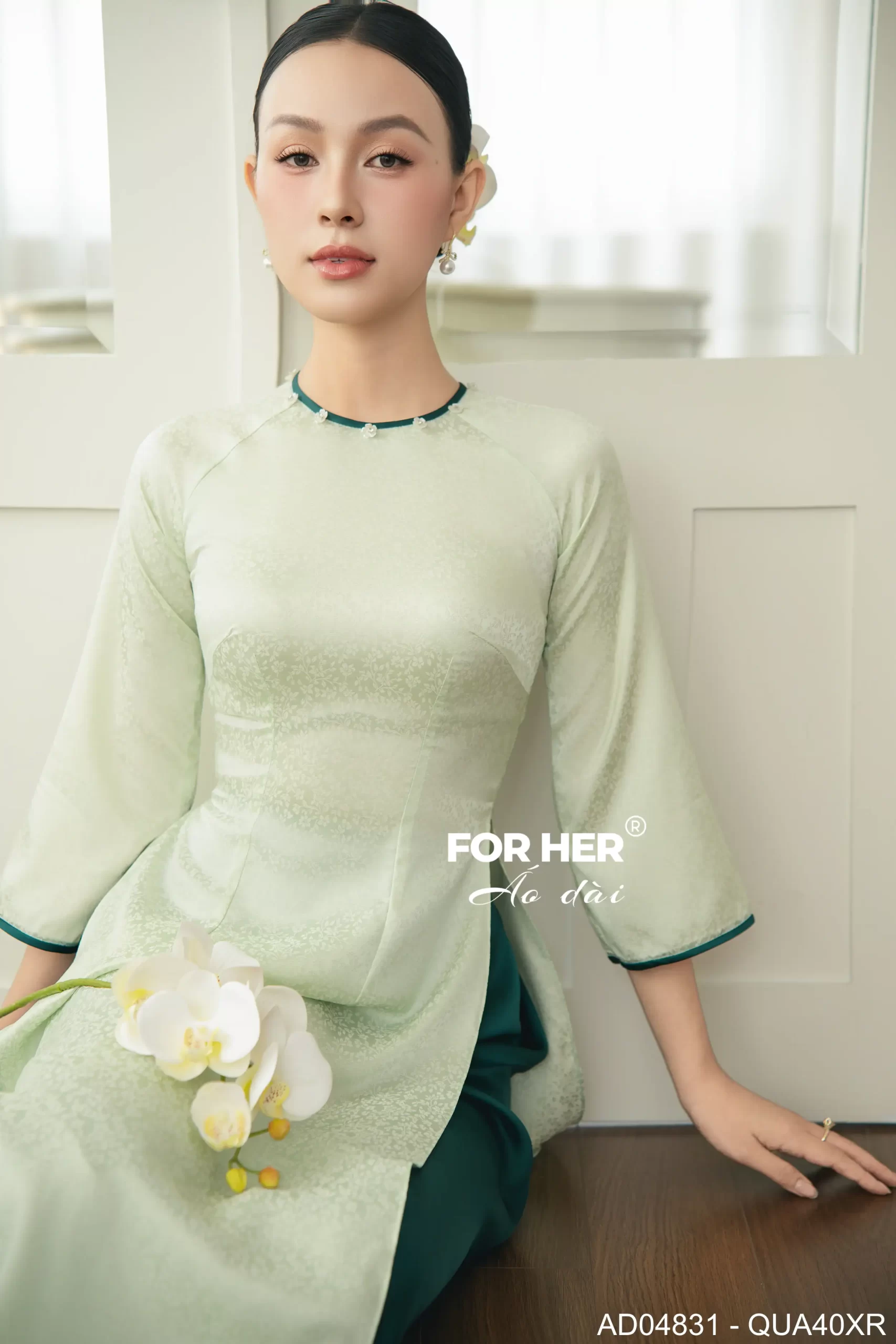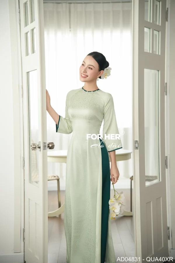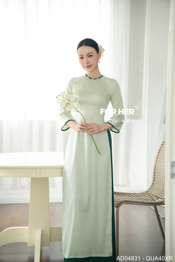 – Áo dài Sương Mai gấm xanh hoa nhí AD04831 (Chỉ bao gồm áo, không kèm quần)