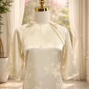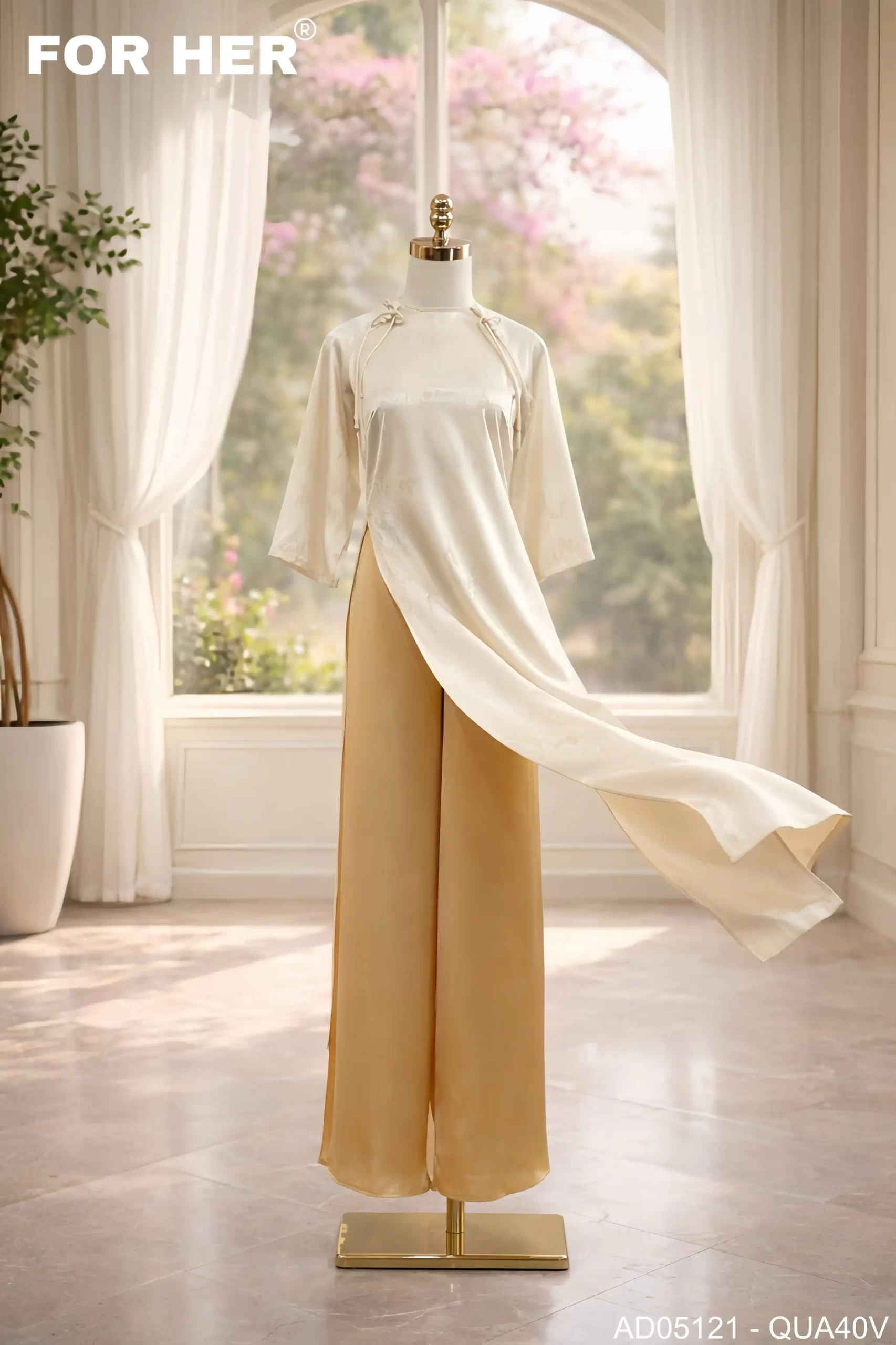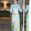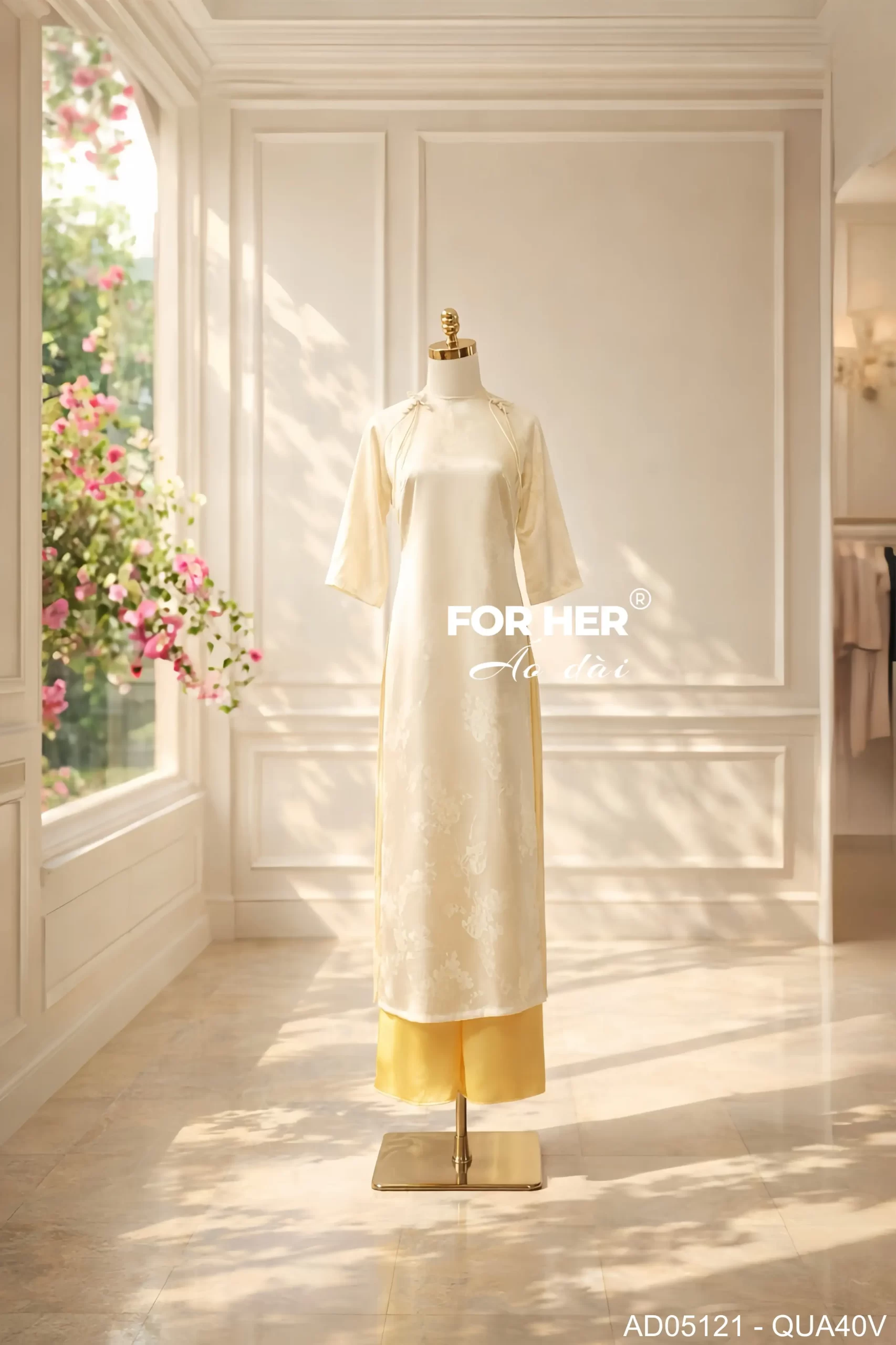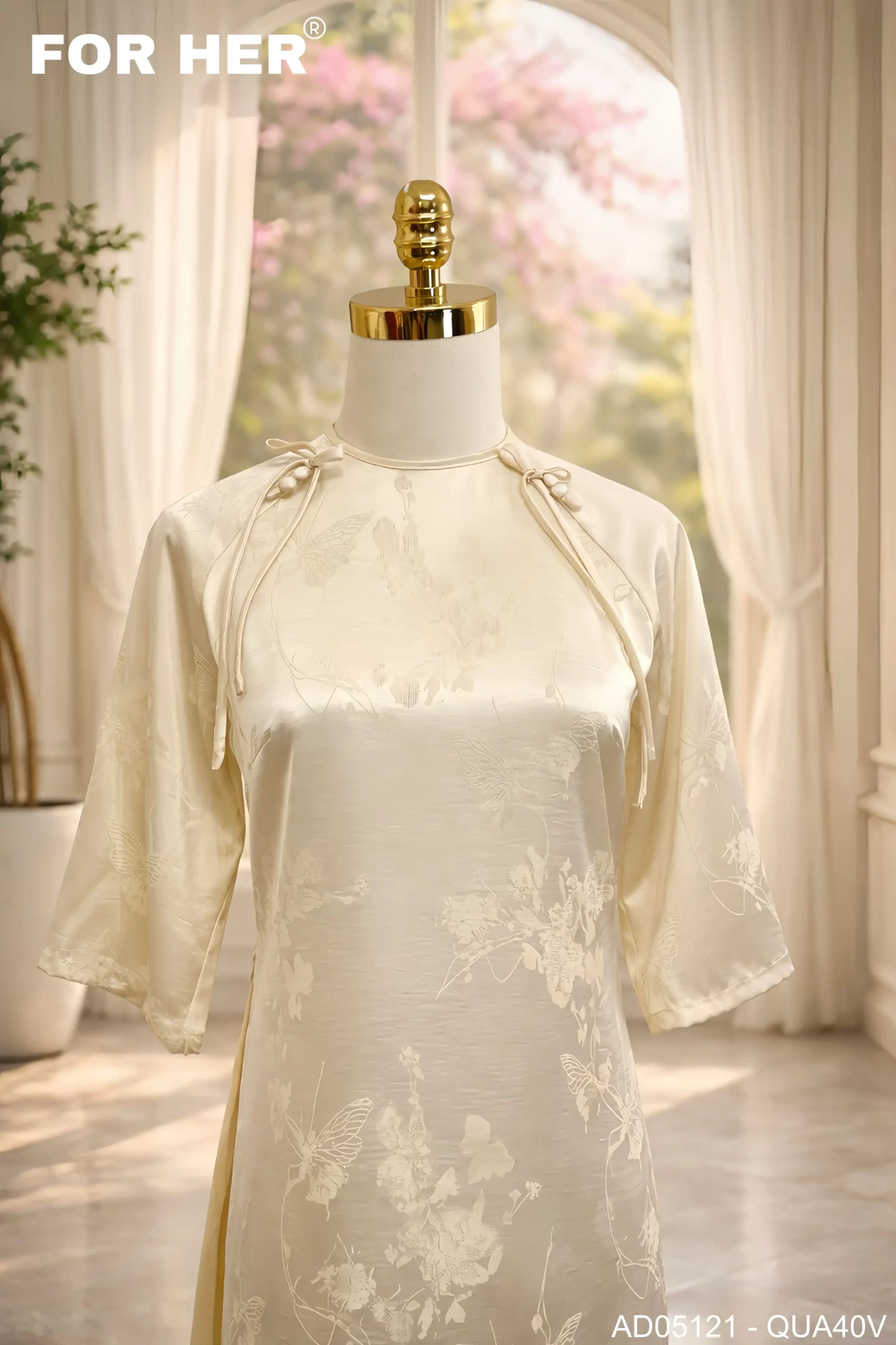 Áo dài Thanh Ngân họa tiết bướm kem AD05121