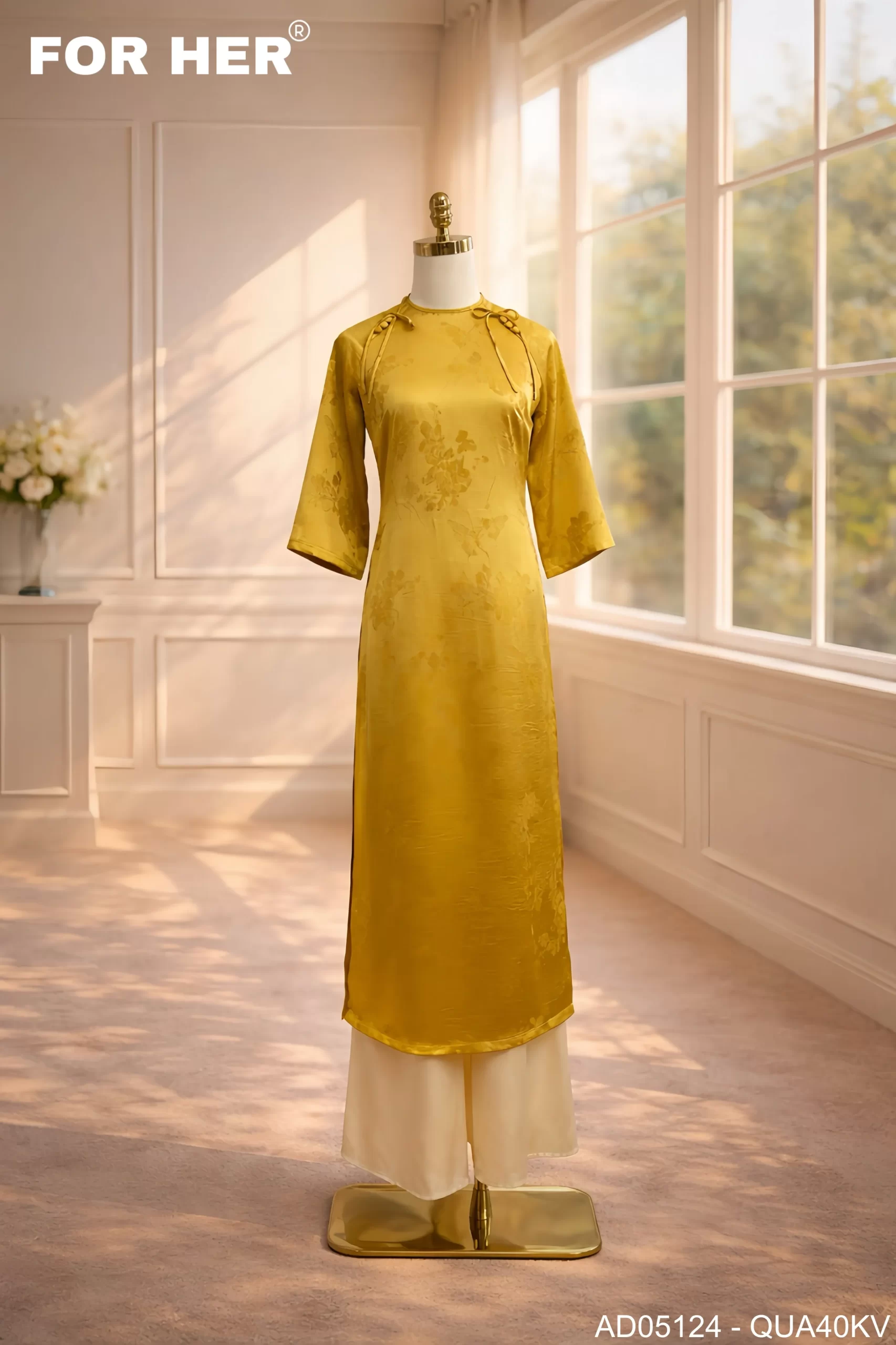 Áo dài Thanh Ngân họa tiết bướm vàng AD05124