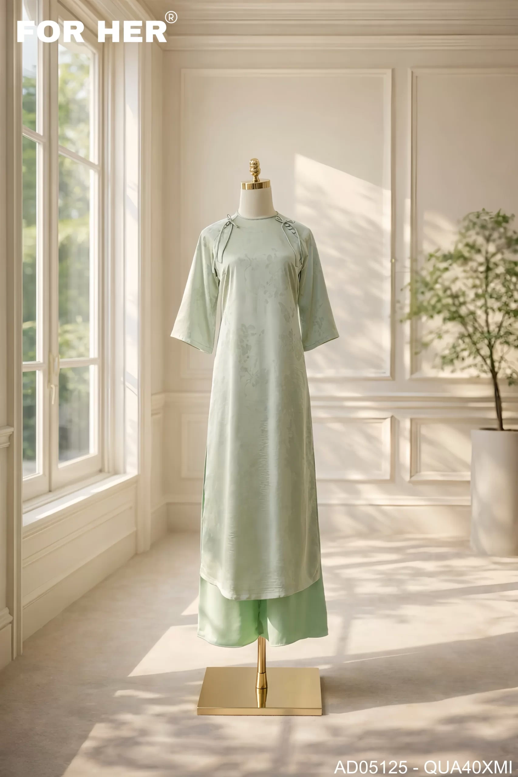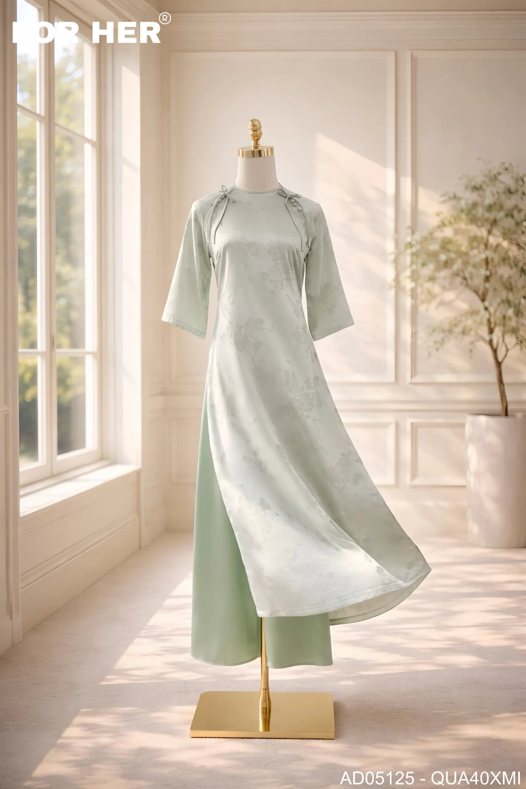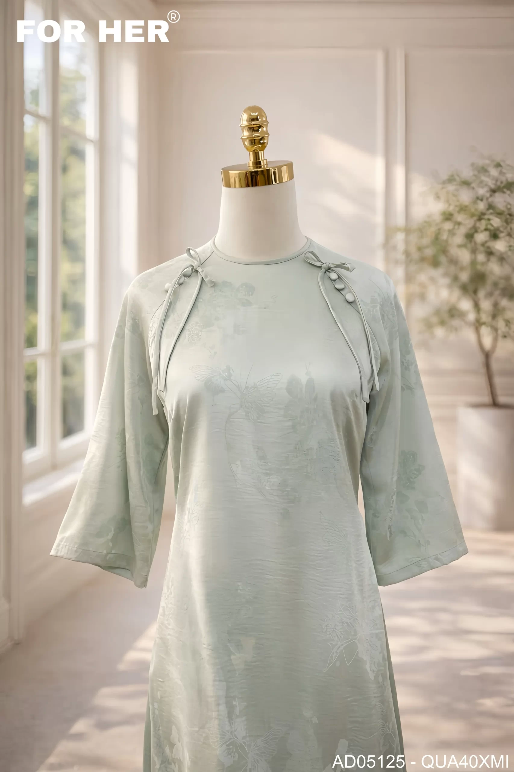 Áo dài Thanh Ngân họa tiết bướm xanh min AD05125