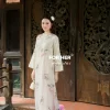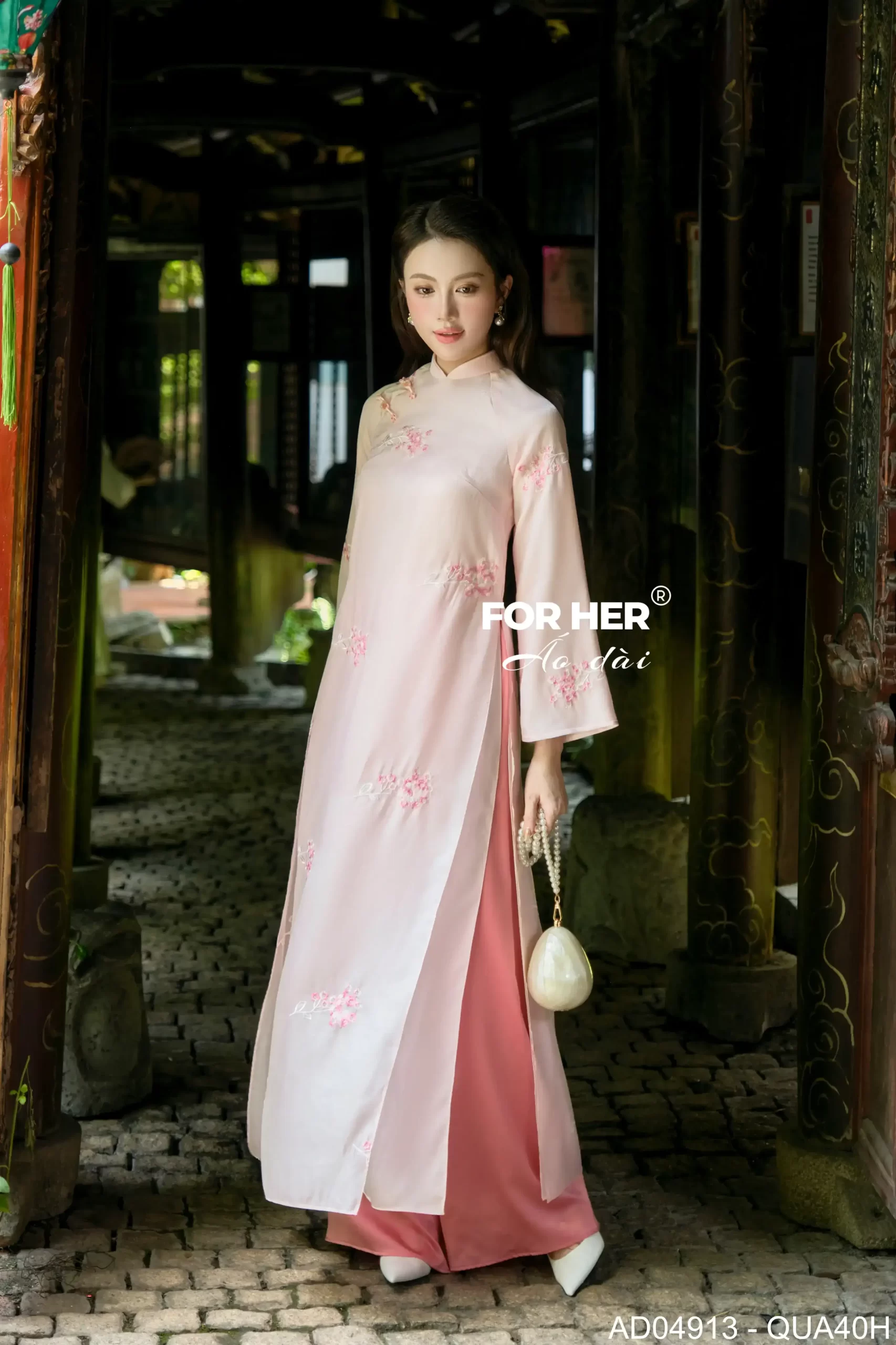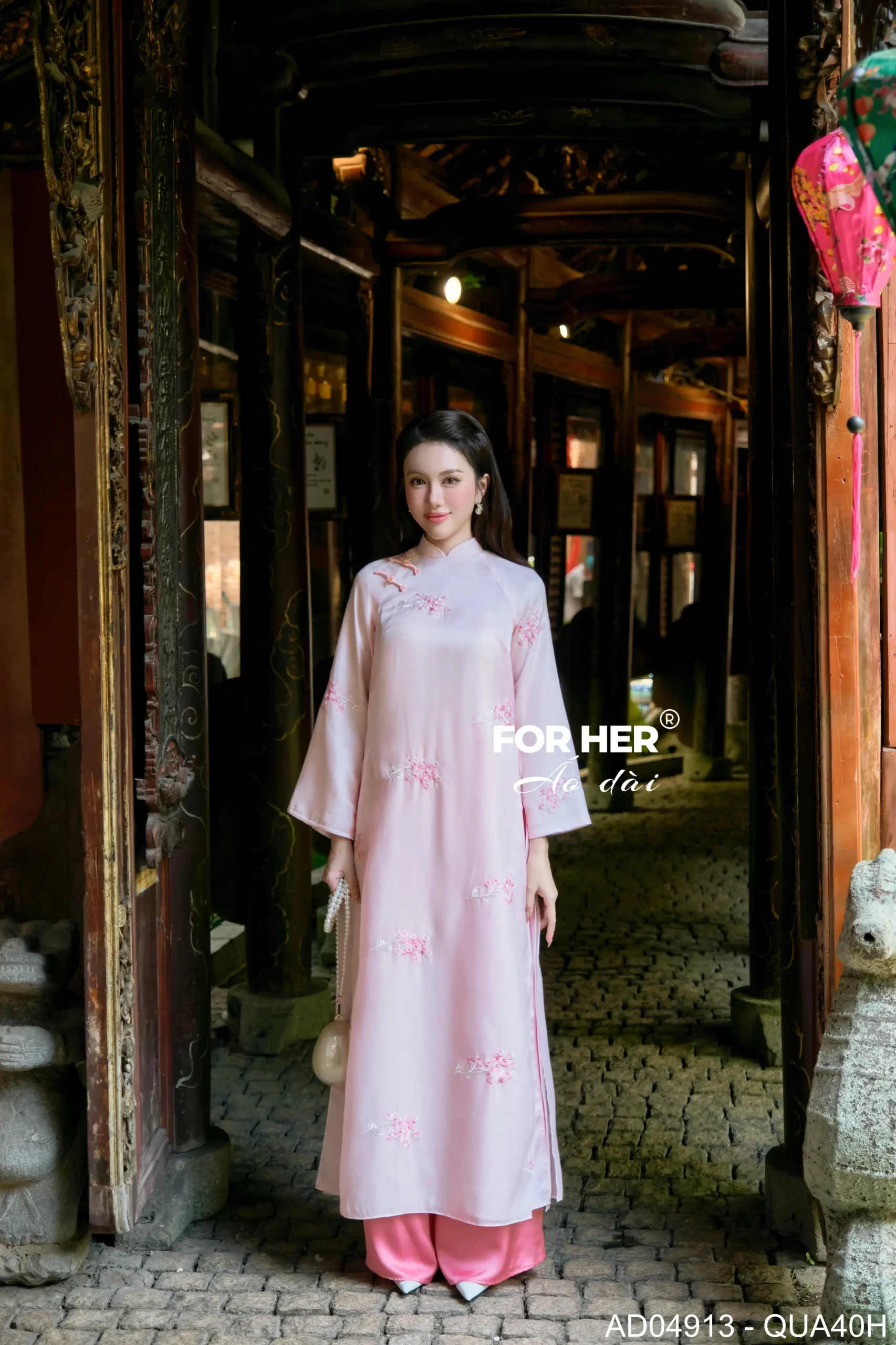 – Áo dài Tuyết Liên gấm xanh AD04871 (Chỉ bao gồm áo, không kèm quần)