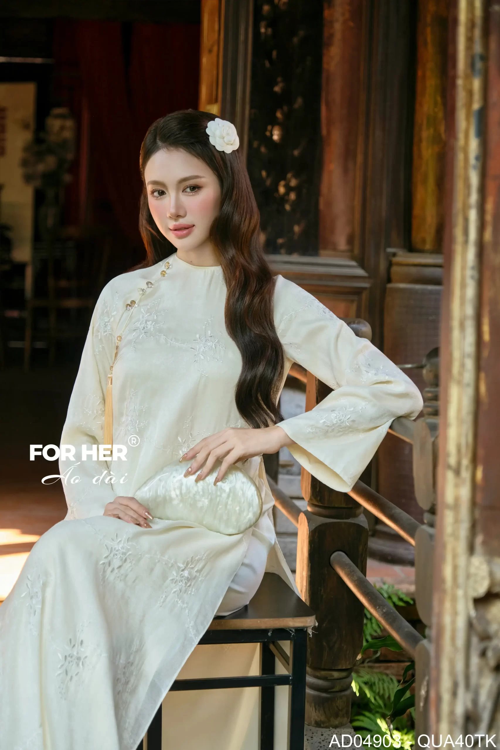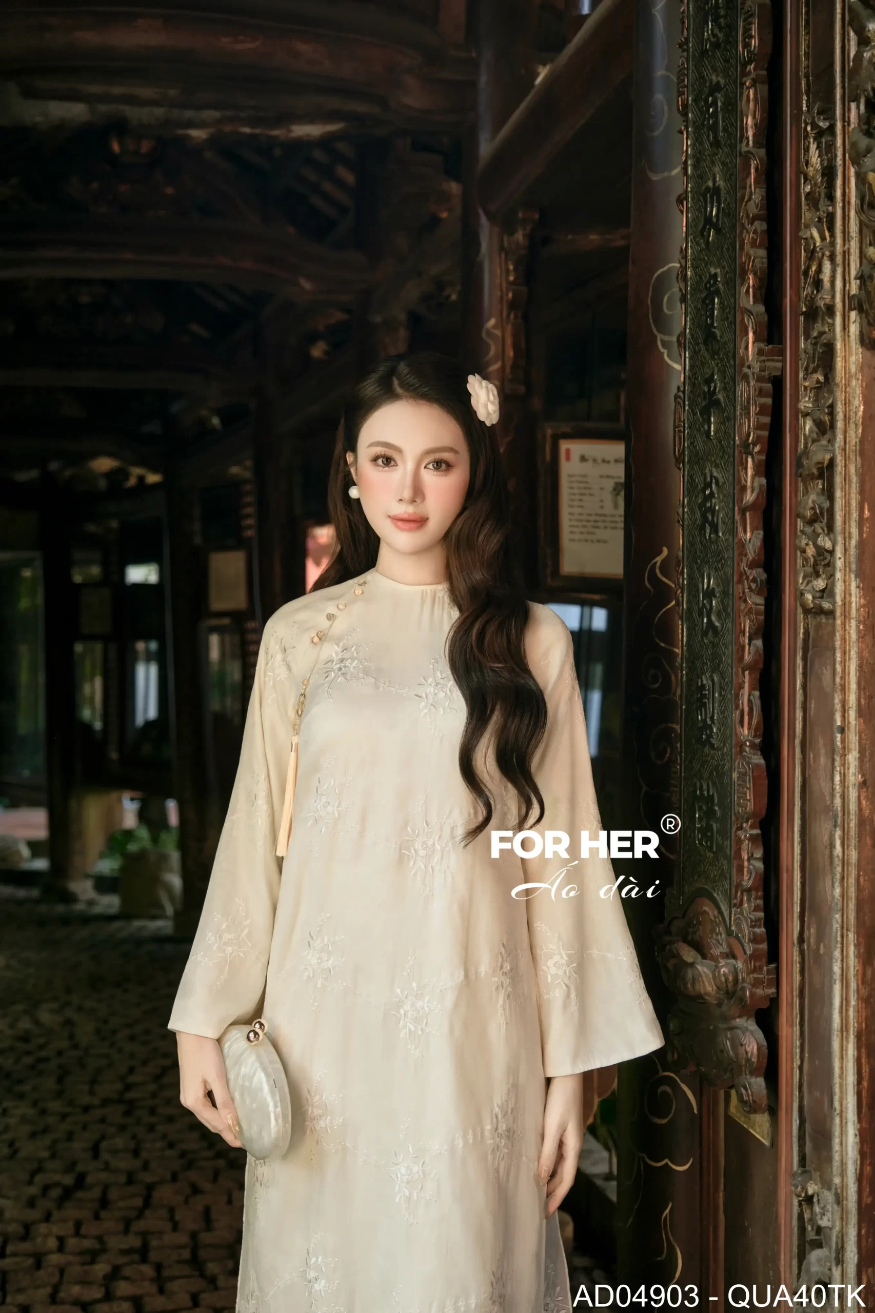 – Áo dài Tường Liên 4 tà thêu kem AD04903(Chỉ bao gồm áo, không kèm quần)