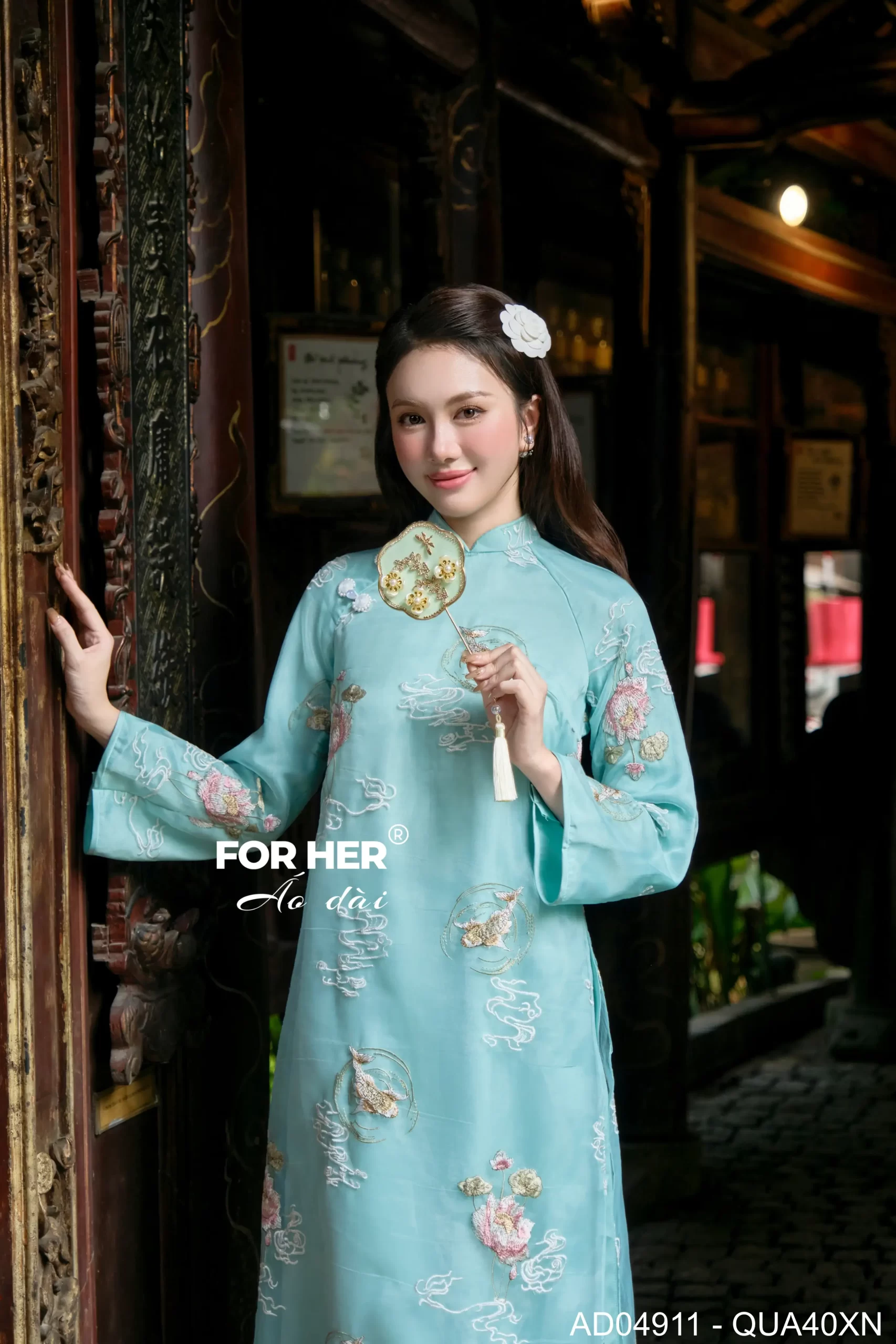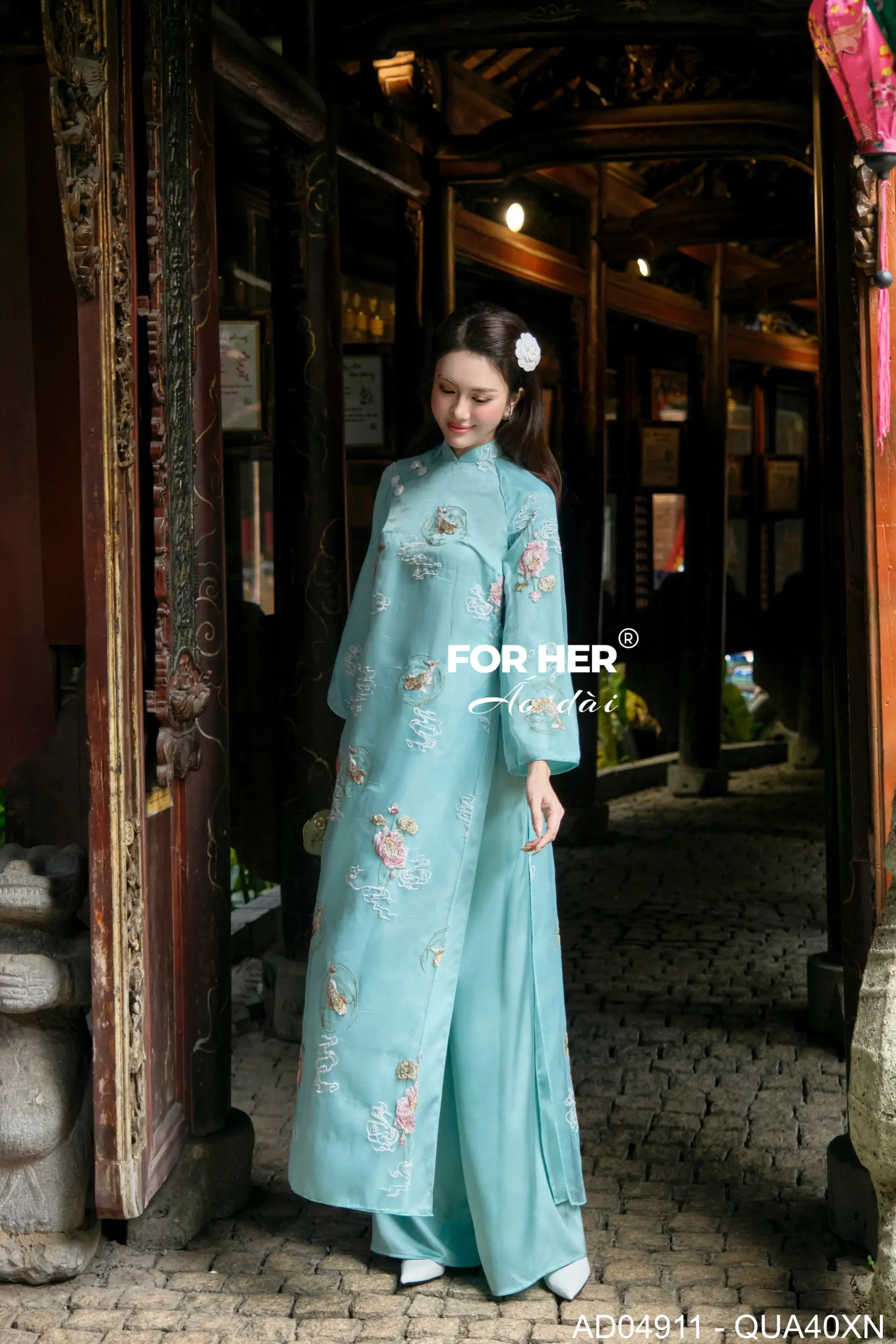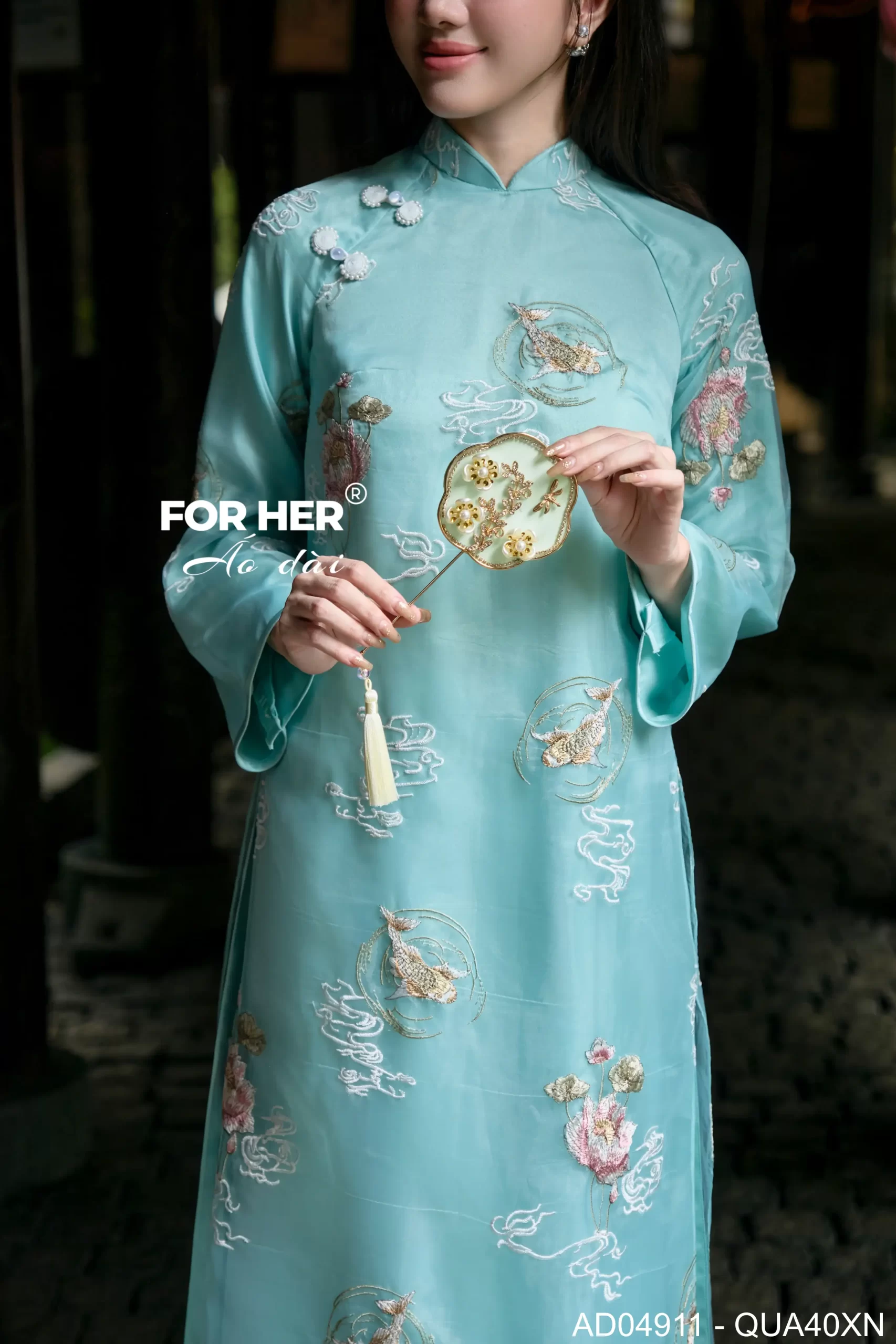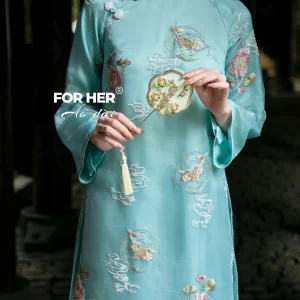 – Áo dài Tường Liên 4 tà thêu xanh AD04911 (Chỉ bao gồm áo, không kèm quần)