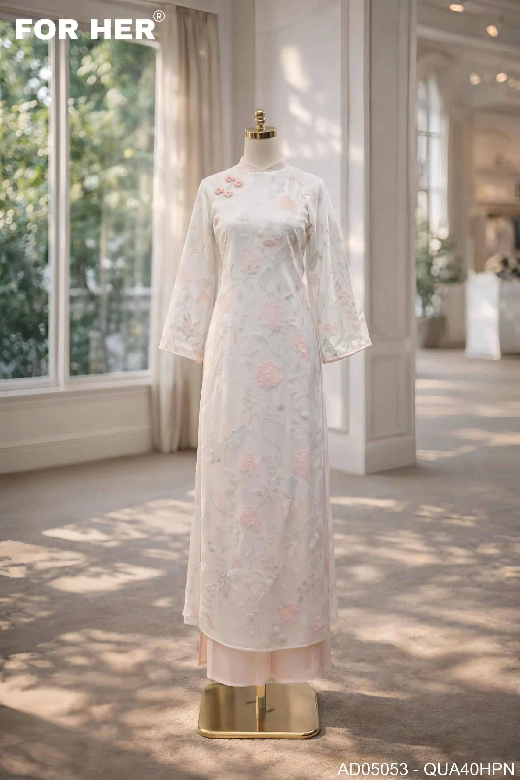 – Áo dài Vân An 4 tà thêu trắng AD05053 (Chỉ bao gồm áo, không kèm quần)