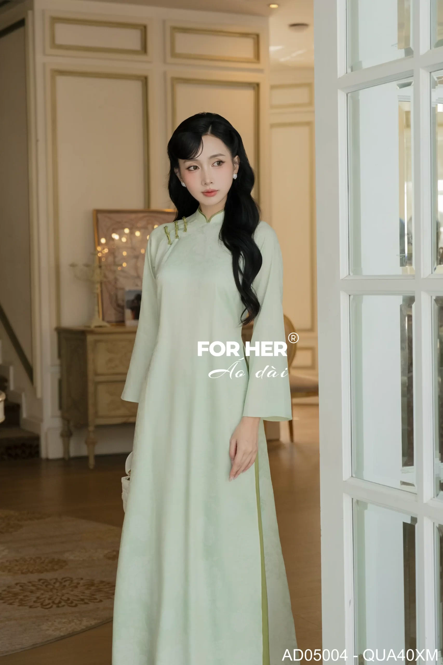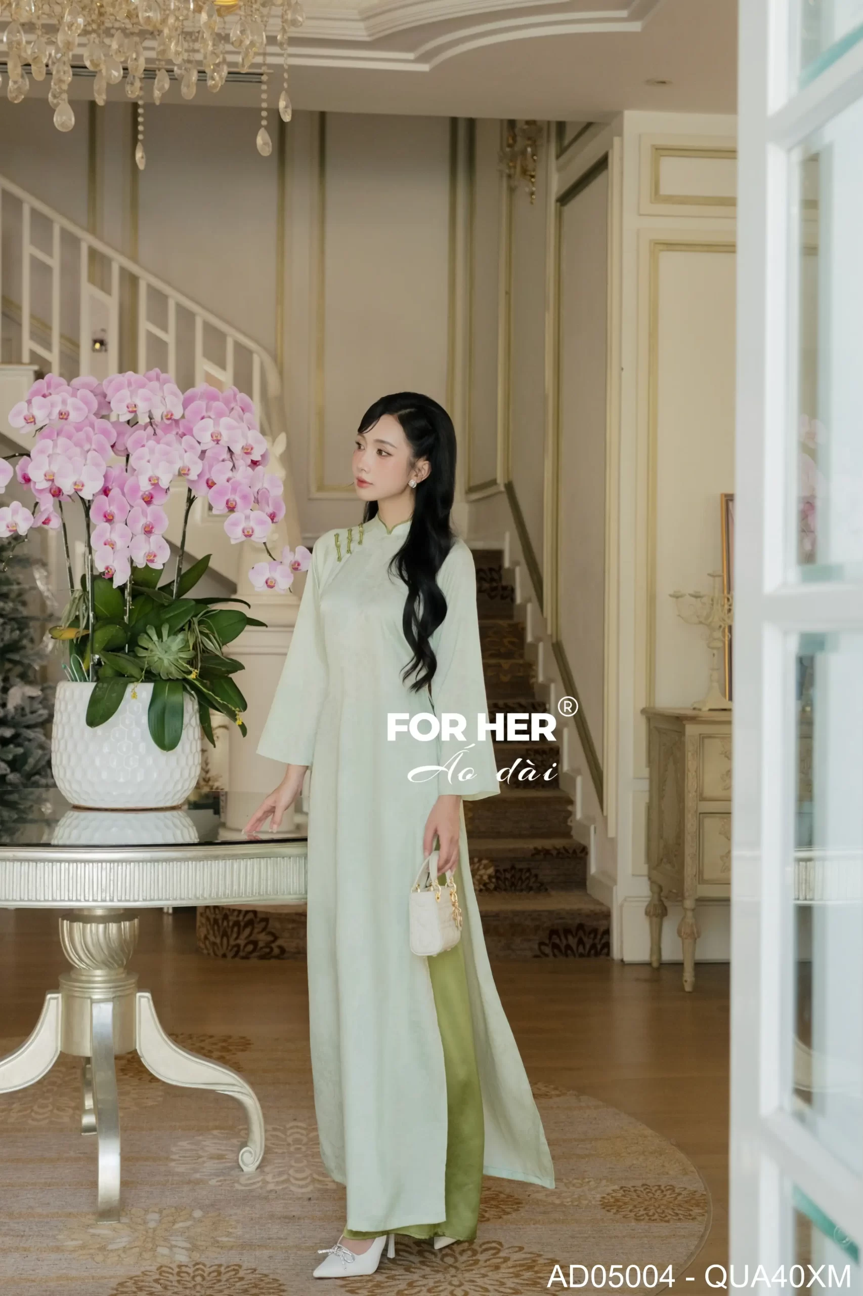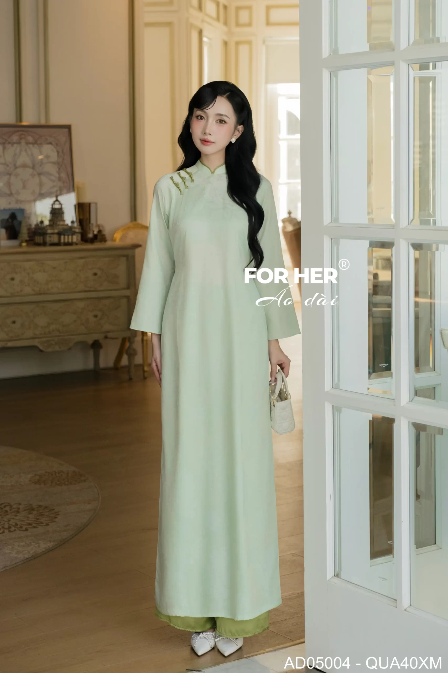 – Áo dài Vân An hoa mẫu đơn xanh ngọc AD05004 (Chỉ bao gồm áo, không kèm quần)