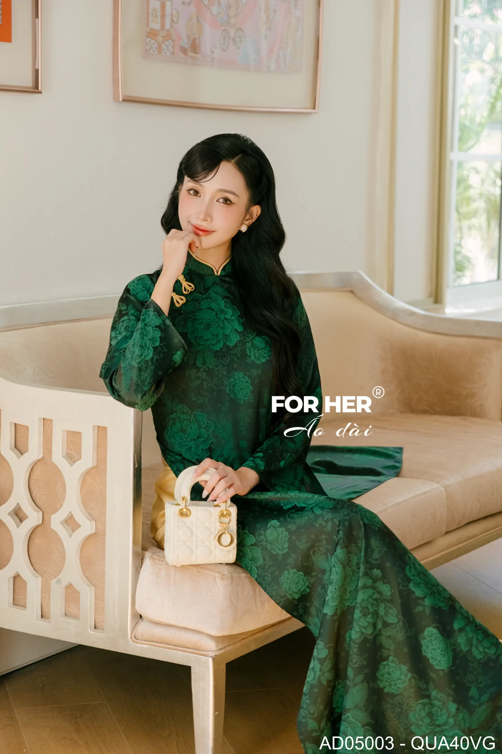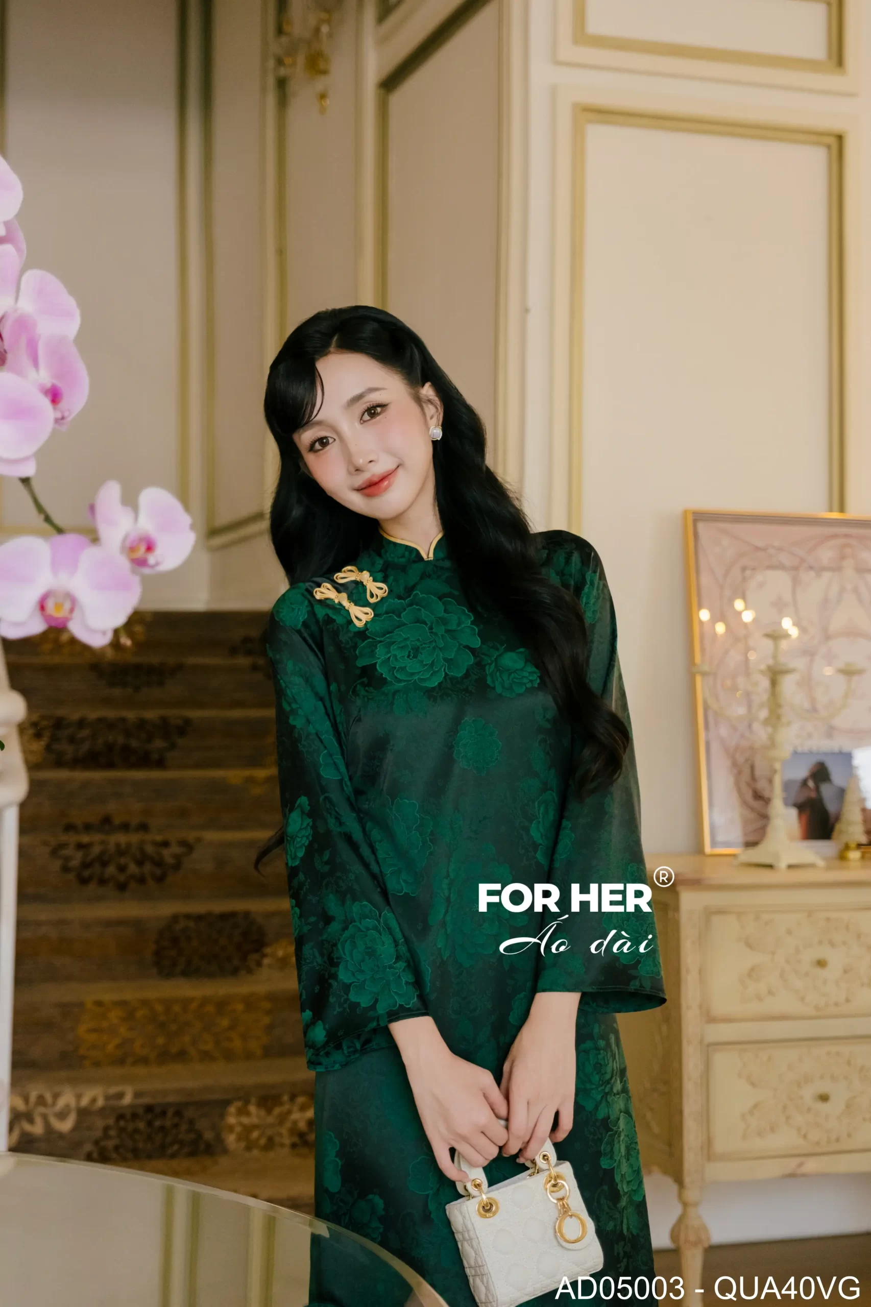 – Áo dài Vân An hoa mẫu đơn xanh rêu AD05003 (Chỉ bao gồm áo, không kèm quần)