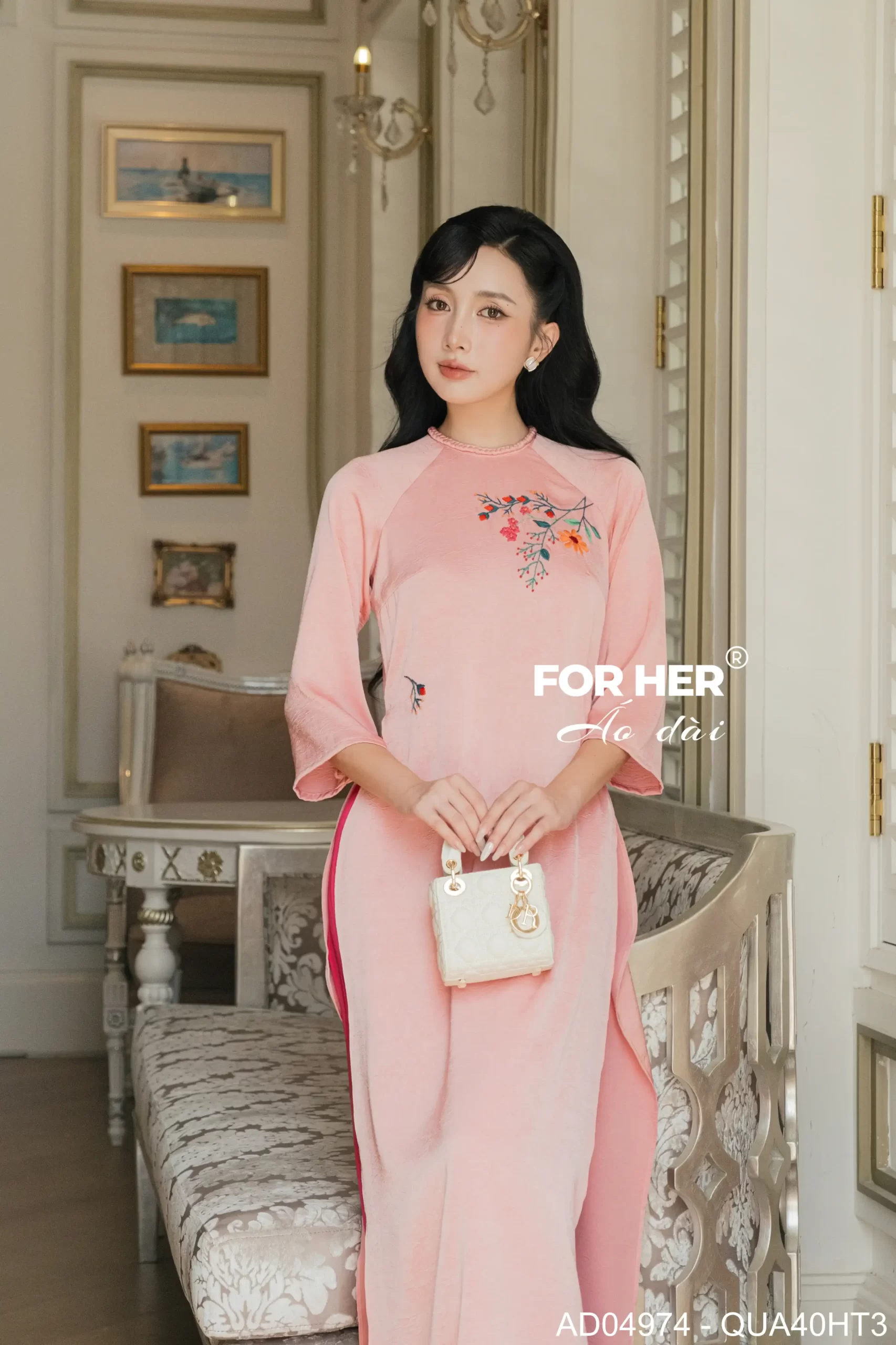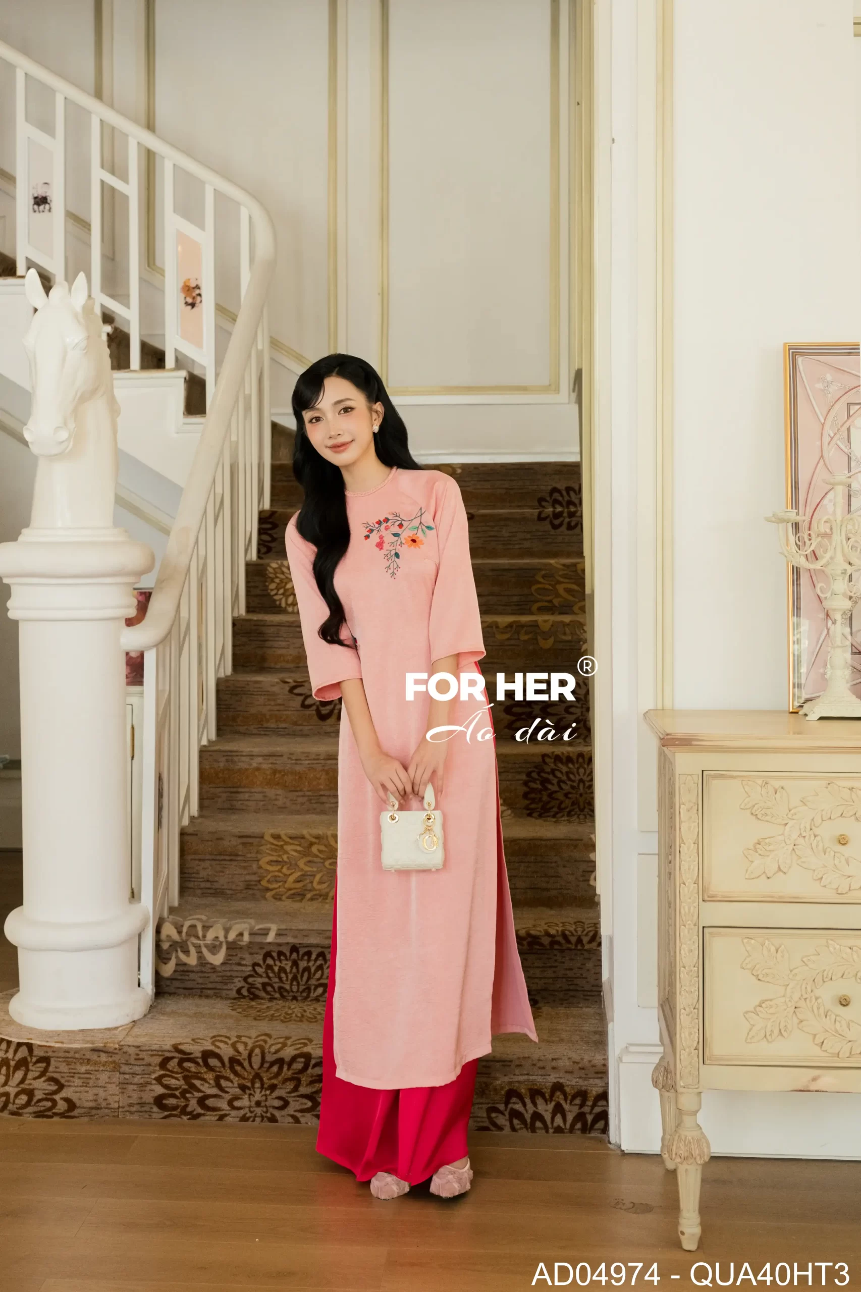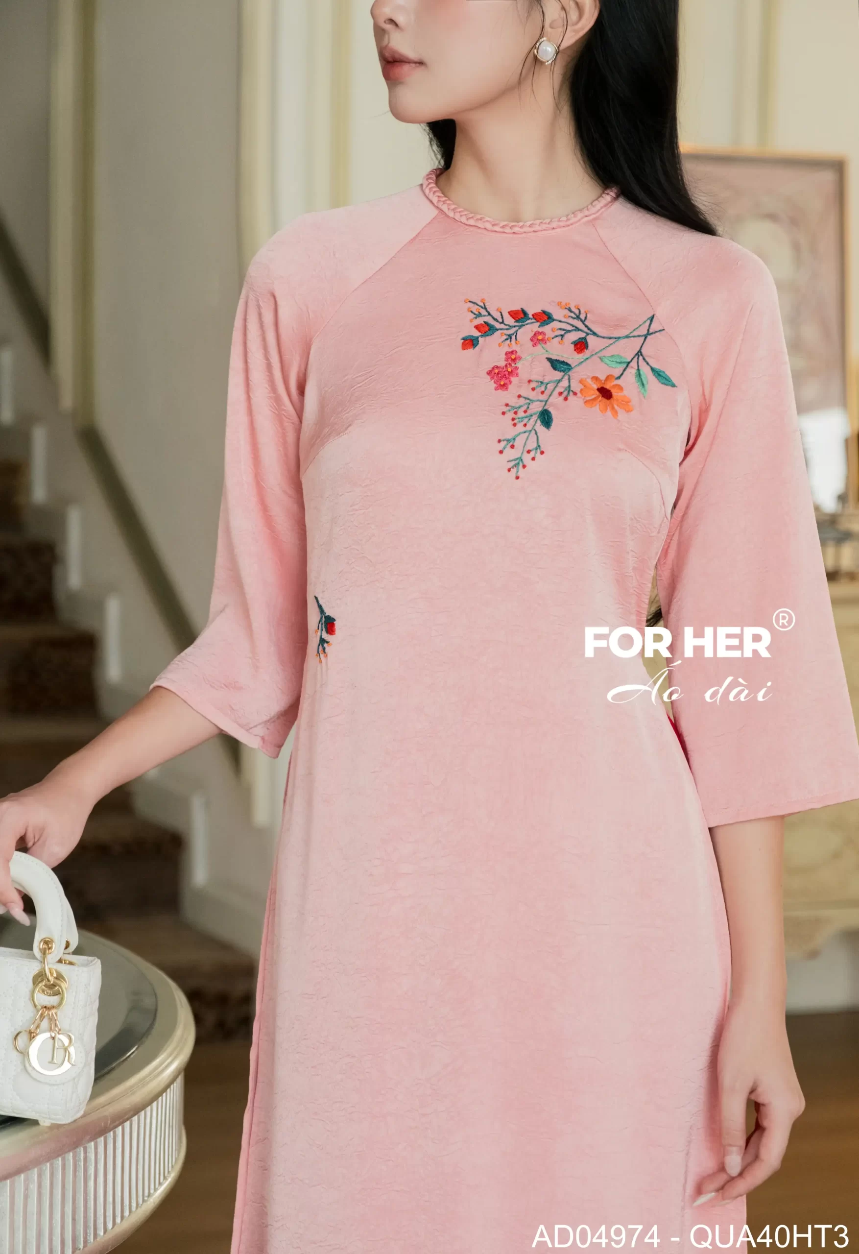 – Áo dài Vân An thêu hồng AD04974 (Chỉ bao gồm áo, không kèm quần)