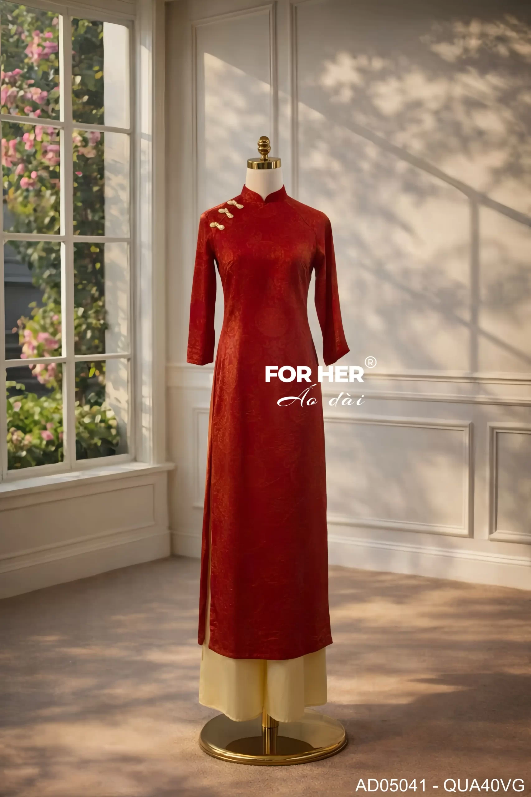 – Áo dài Vân An thọ dơi đỏ AD05041 (Chỉ bao gồm áo, không kèm quần)