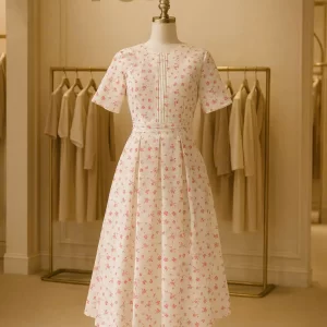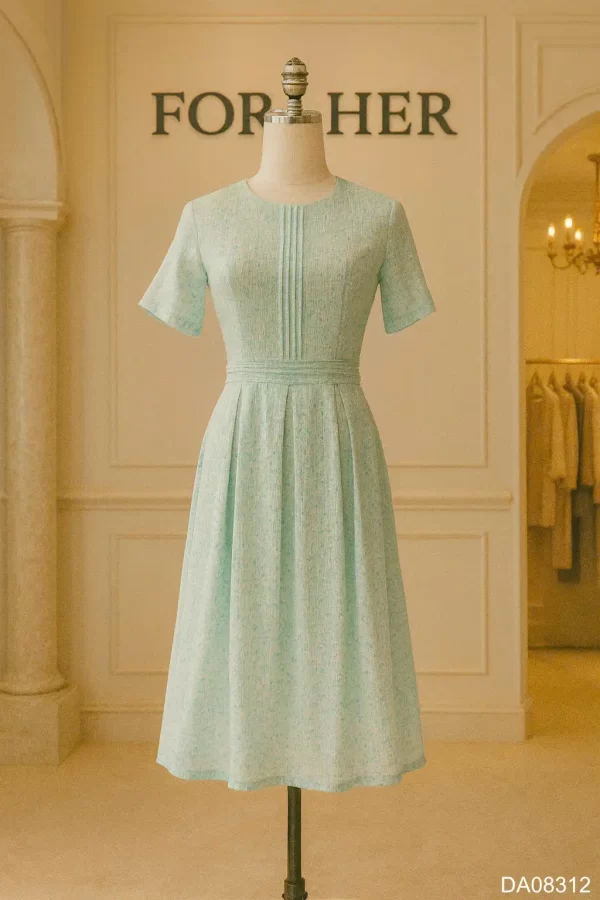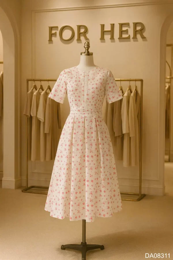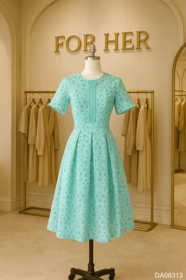 – Váy cổ tròn xếp ly hoa nhí DA0831